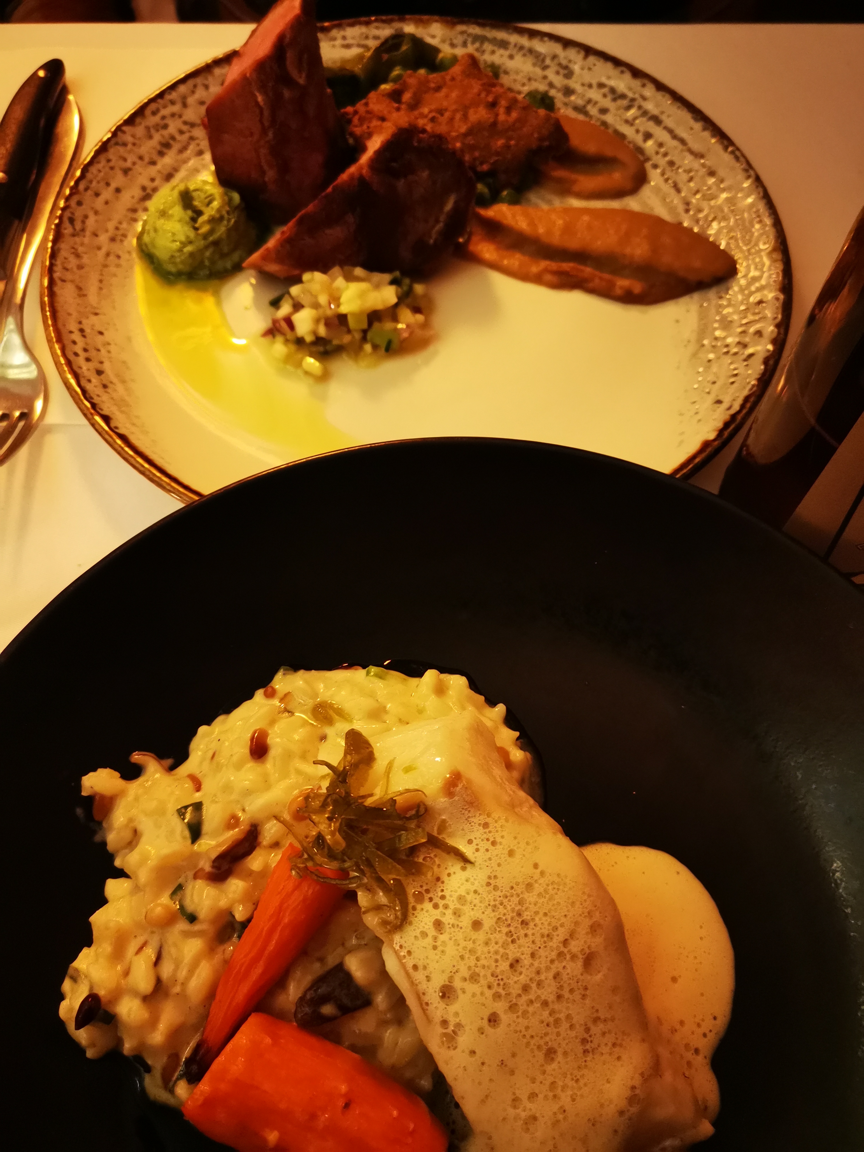 Les plats sont vraiment très bon, le décor super avec un effet de lumière mi pénombre mi éclairé comme il faut