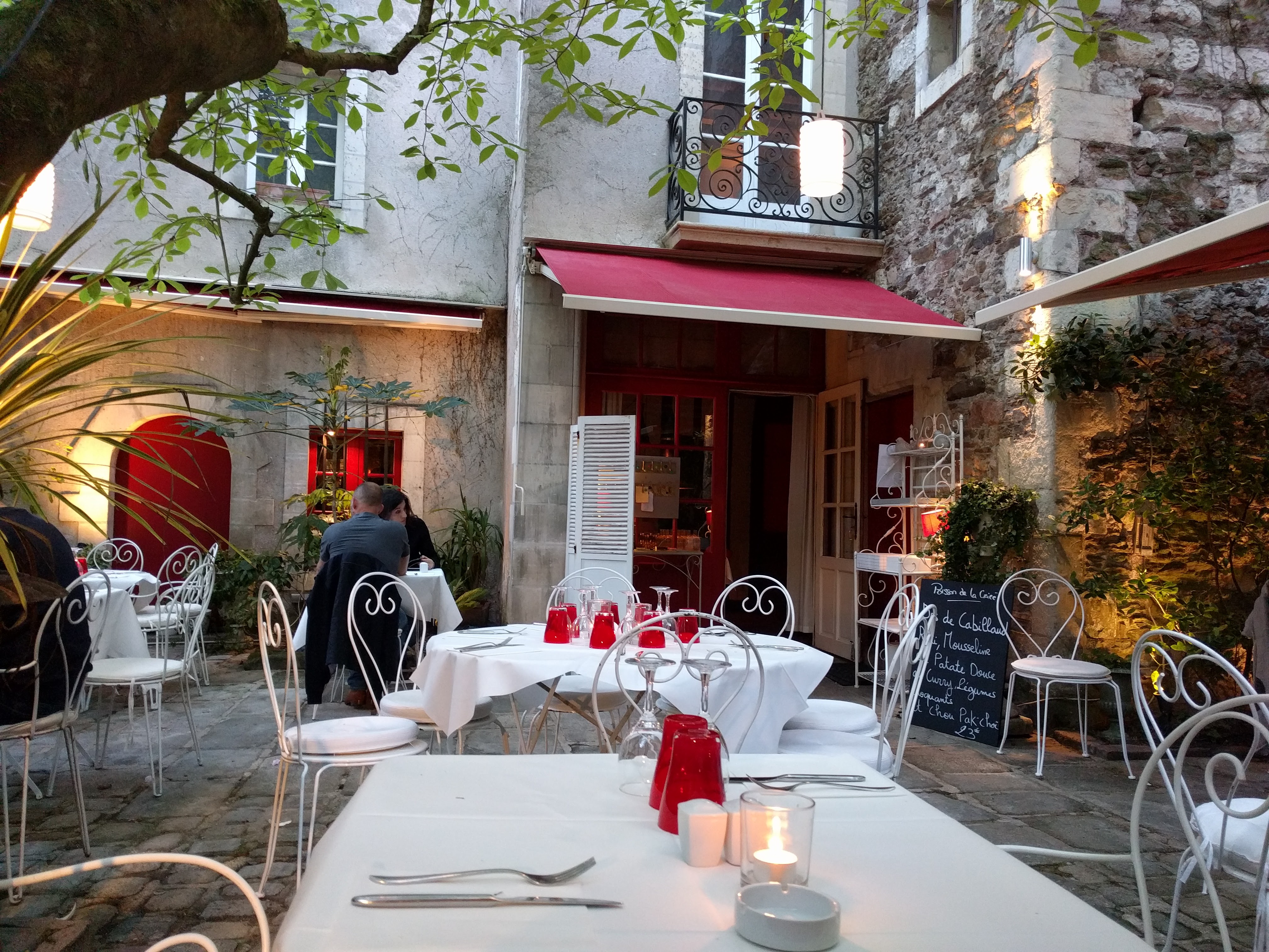 Une très bonne adresse à Nantes Tout d'abord le lieu est historique Le bâtiment vous fait plonger dans l'histoire de Nantes. Le restaurant est aussi dans une rue calme avec peut d'autres établissements. Étant très donné l'historique, la salle n'est pas très grande et plus propice à un dîner romantique ou au calme qu'aux grands groupes. C'est plutôt un point très positif pour apprécier la gastronomie. Les plats sont raffinés et sortent des standards des restaurants type brasserie. Par conséquent n'y allez pas pour manger un steak frites. Le personnel est aussi très sympathique et aimable. A noter aussi il y a une cour avec une terrasse pour les périodes chaudes.