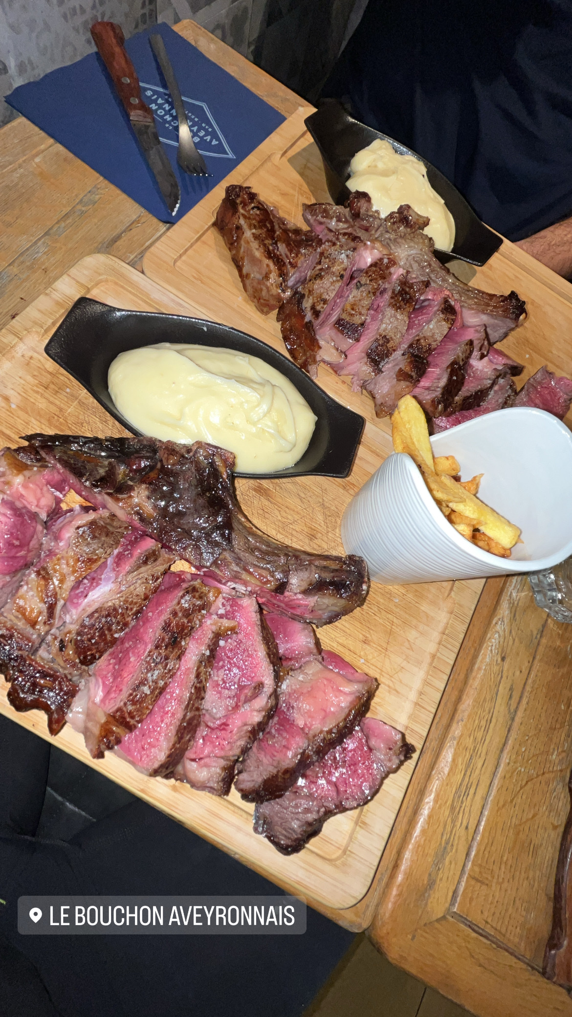 Quel convivialité quel partage ! Aligot et viande maturé , sole, salade de ris d’agneau . Et ce rhum donpapa offert par le patron . Merci et à bientôt