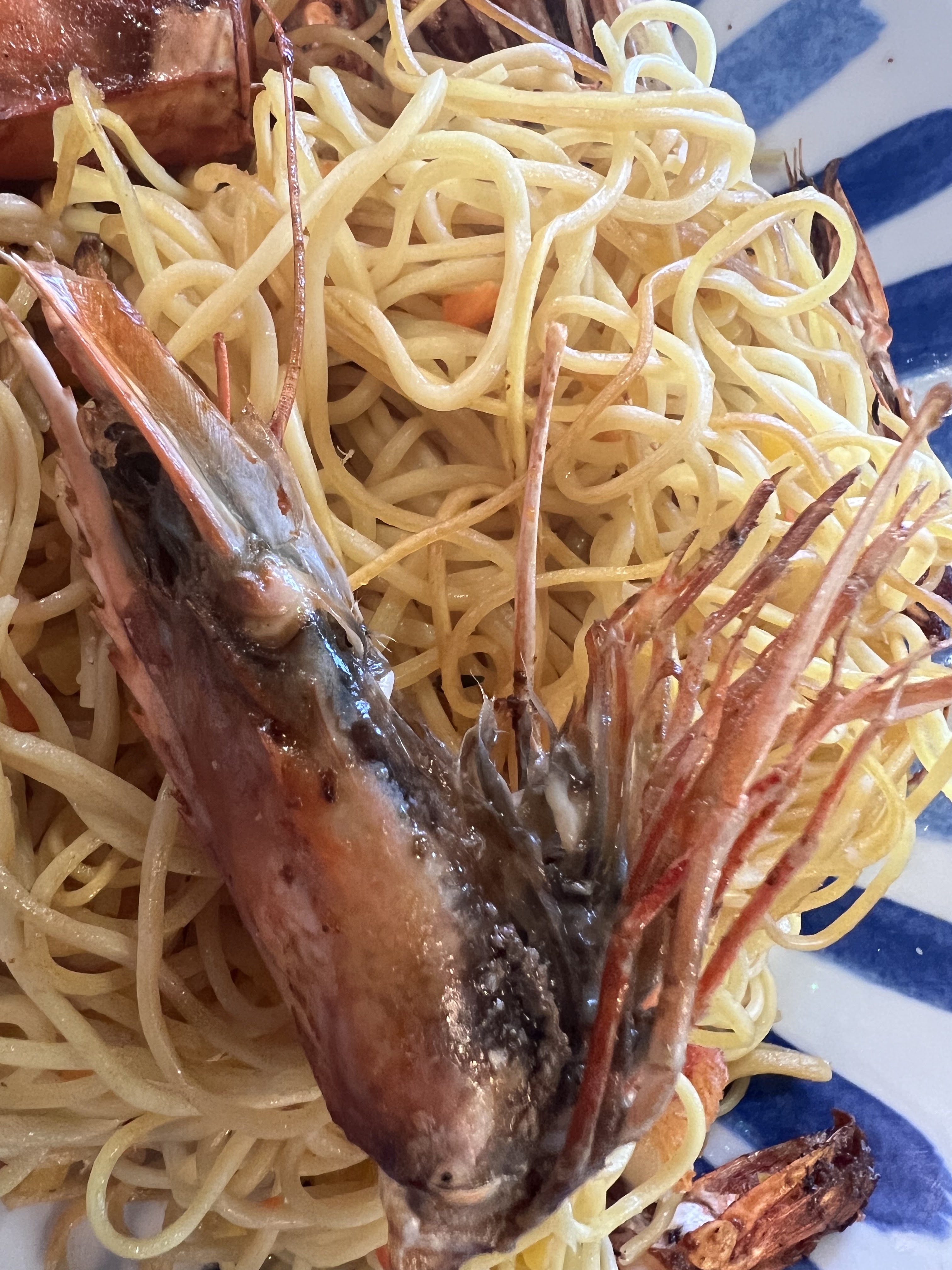 Mon assiette de repas des fêtes des mères ira à la poubelle, nouilles sautées recuites, gambas desséchées et avec une odeur immonde. Une première et une dernière… 3 asperges en entrée c’était peu. nous venions confiant et c’est raté. Plastique dans la glace de ma grand mère !!! Heureusement la bière est bonne