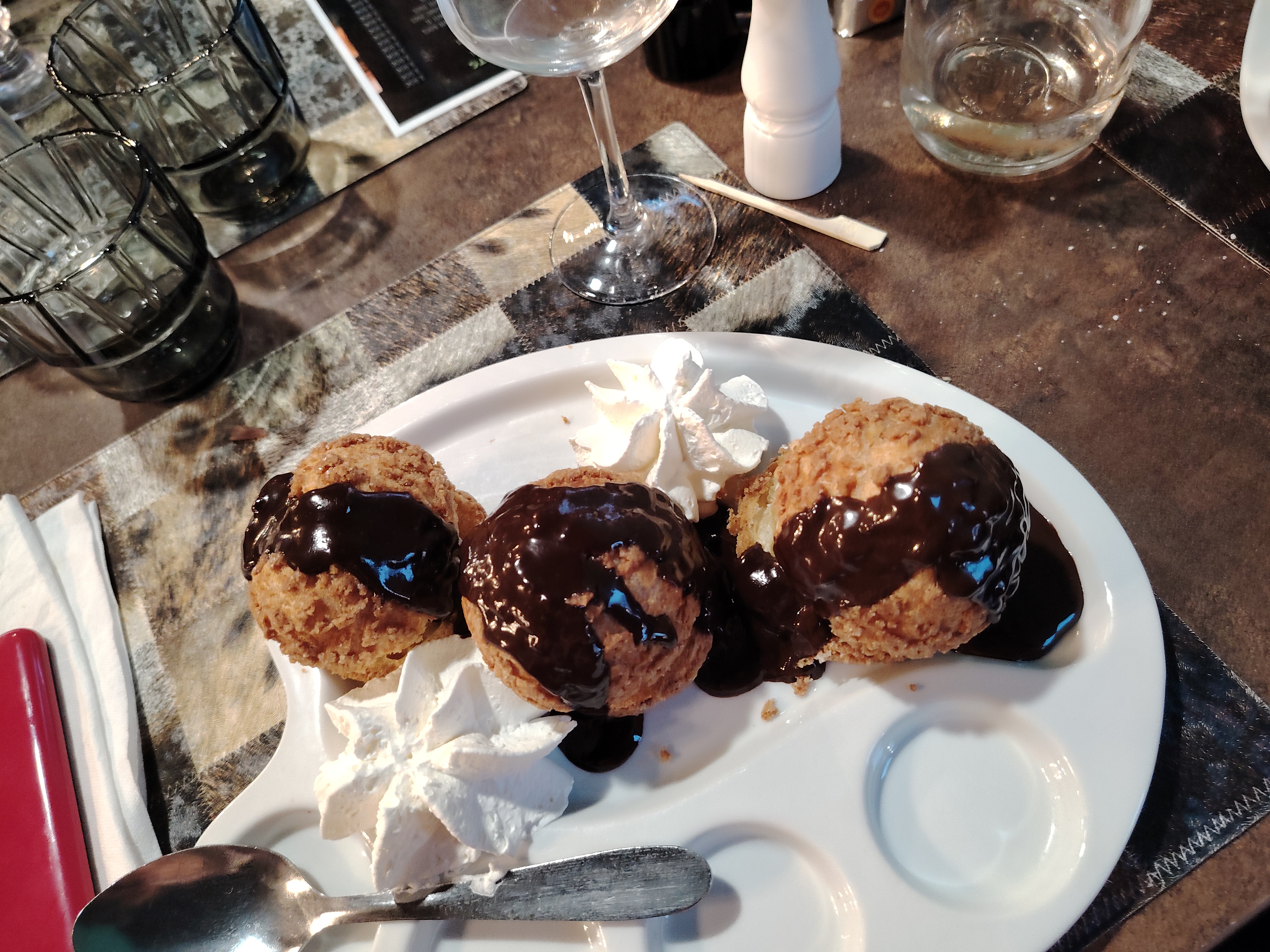 Nous avons passé une excellente soiree, malgré le peu de monde dans l'établissement. Mais un service au top et des serveurs bien agréables. En ce qui concerne les plats , nous avons adoré cela se voit que c'est soigné. Et les profiteroles comme dessert, humm un délice en plus on peut choisir ses boules de glaces jamais vu pour ce dessert.