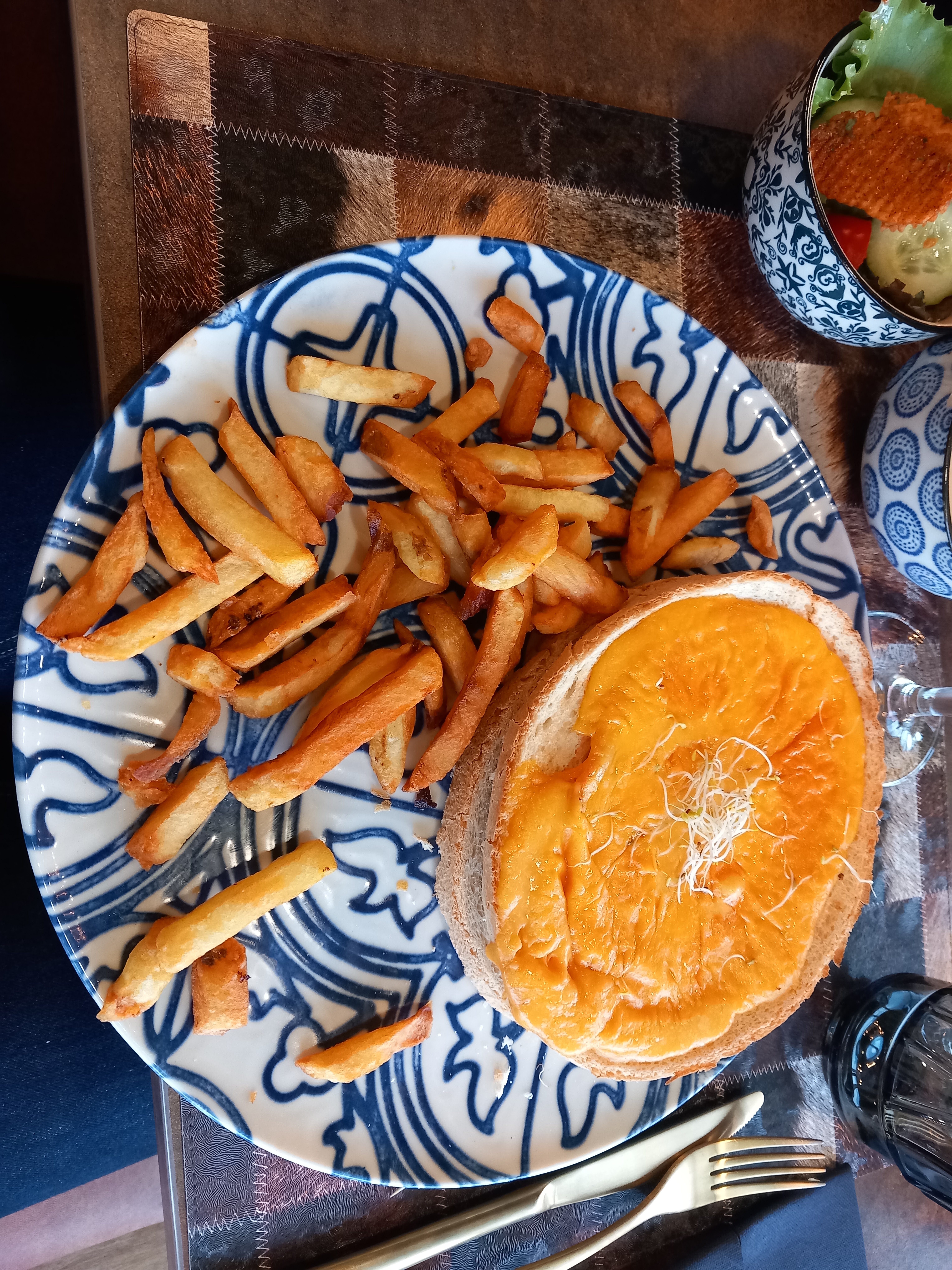 Très mauvaise expérience malgré un service efficace d'une serveuse, pas du tout le cas du responsable de bar/salle. On a commandé un welsh mais arrivé à table comment dire... Je vais vous donner une adresse où ne pas aller. Un welsh ou plutôt un panier de basket 🏀 emporte piècé dans une grosse tranche d'un pain blanc: pain non toasté (Bruschetta de chez Métro sèche et fade)où il restait 90% de croûte, un cheddar pas huileux mais avec un aspect béchamelisé avec un jambon épais comme du papier à cigarette sans pain en dessous (Ni toasté, ni imbibé, ni présent vu qu'il s'en sont servi comme une auréole de pain, non moutardé Heureusement qu'il y avait de la salade (Oui parce qu'à 18,90€ j'avais quand même la dalle, et de l'Anosteke pour manger un morceau sur le pouce tout de même). Si le chef souhaite revisiter une Bruschetta qu'il laisse un peu de mie dessus. Histoire de... d'avoir du pain dans le welsh 🤷🏼♀️ #CauchemarEnCuisine #philippeetchebest #inflation