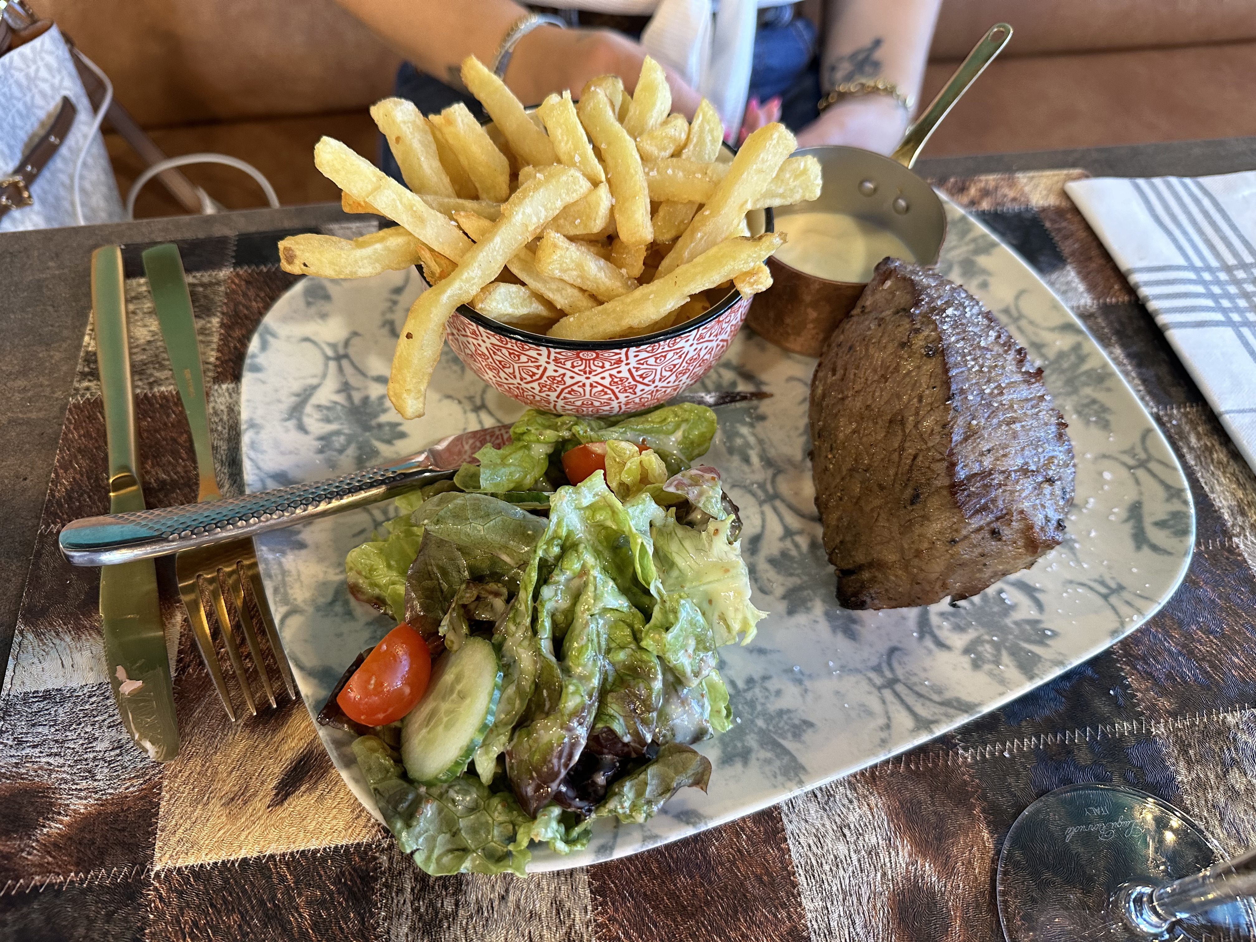 Très bon, le cadre du restaurant est magnifique et la vaisselle superbe.