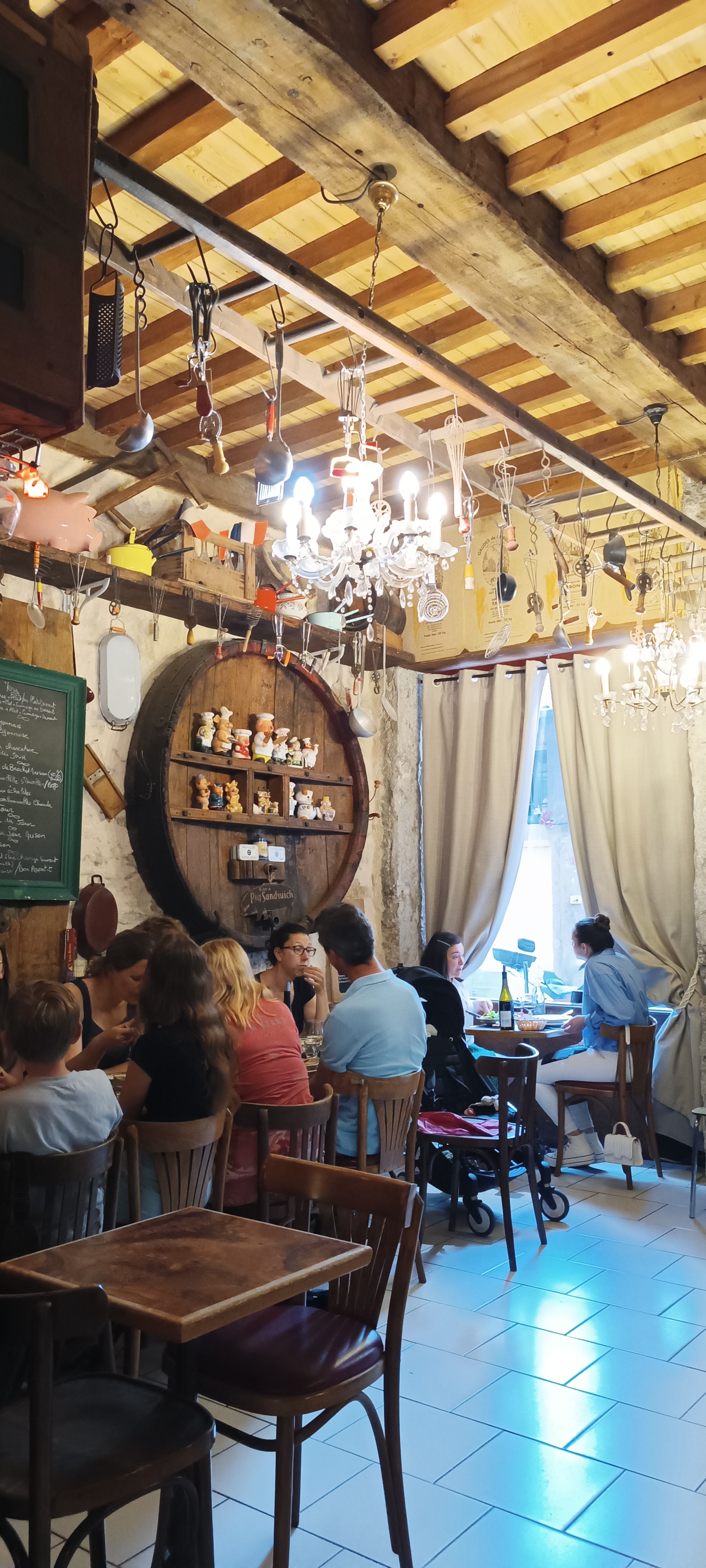 Petit restaurant très sympathique. Spécialités lyonnaises dans un cadre rustique à prix abordables Déco du tonnerre, serveur expert, excellente gaude.... À vivre.
