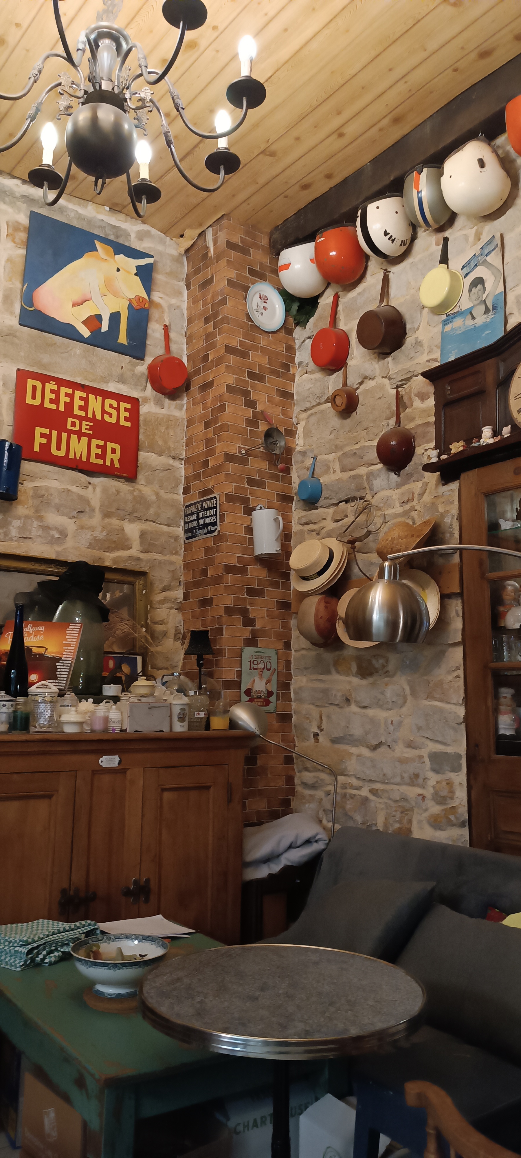 Un lieu typique tant par son cadre ou trônent divers objets chinés ça et là en lien avec la cuisine, que par la qualité de l'accueil de cette charmante famille qui sait transmettre sa joie du partage et les possibilités d'échanges entre convives ! Un lieu incontournable !!!