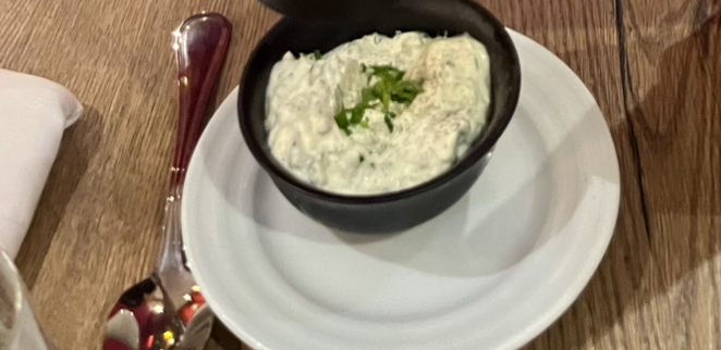 Restaurant très sympathique concernant les plats entrée tartare au saumon je trouve qu'il y a trop de pommes de terre et pas assez de saumon mais la combinaison des choses fait que le plat est appréciable rognon avec sa sauce aux morilles très savoureuse malgré ma demande de faire bien cuire ça n'a pas été fait mais la combinaison de la de la sauce et de la viande était parfaite à revenir