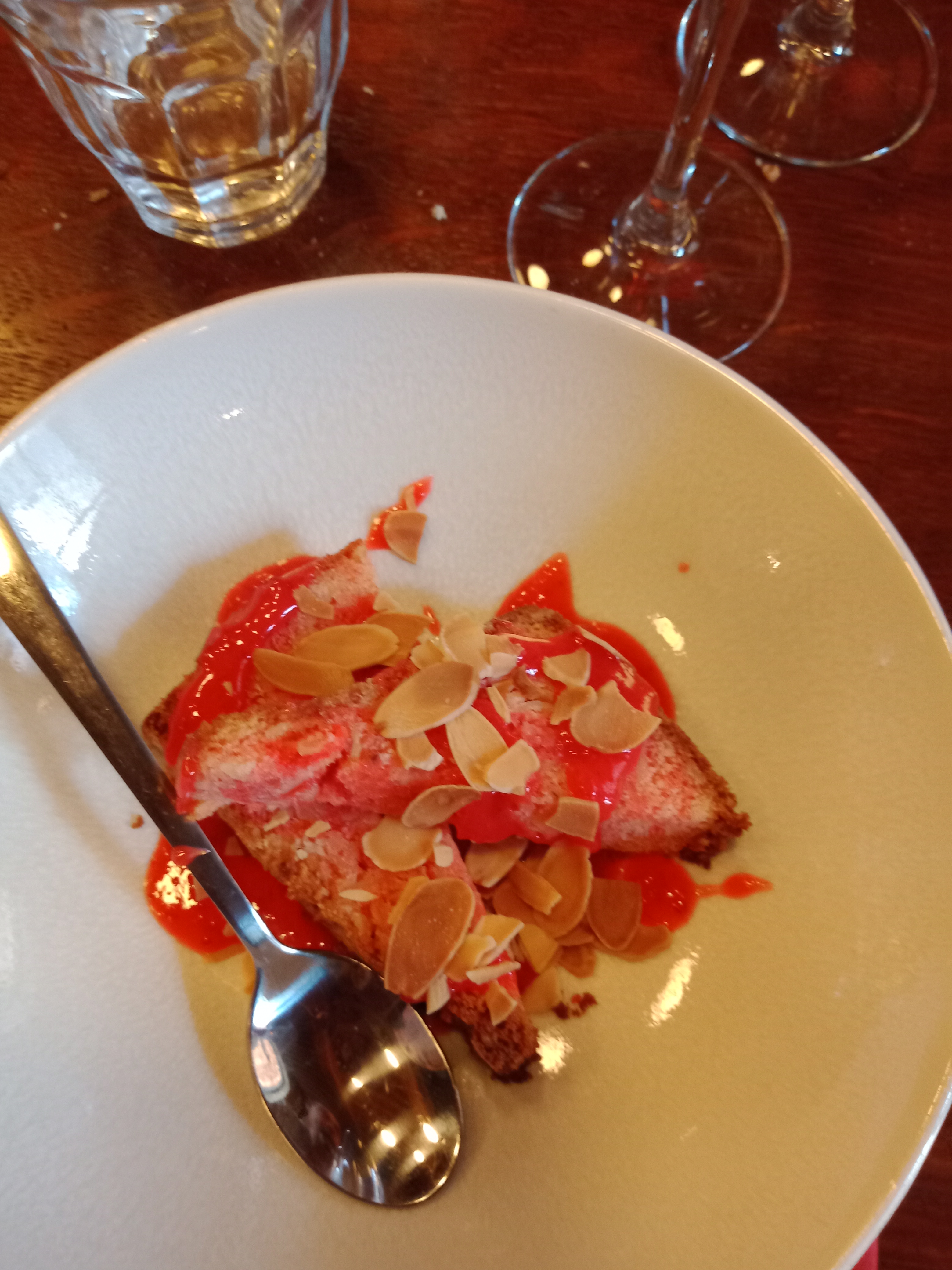 Restaurant très agréable, caché au milieu d'une petite rue pavée, l'intérieur y est très chaleureux, souvent complet d'après ce que des amis nous ont dit, on comprend pourquoi, menu unique à 27€, des plats préparés à la demande, des produits frais, un peu de temps avant qu'ils n'arrivent jusqu'à la table mais ça vaut vraiment le coup d'attendre, beaucoup de choix de vin, serveurs agréable, un peu perdu parfois avec le monde (ils ont oublié de nous amené une boisson d'ailleurs 😅) mais bon, c'est pas bien grave, je recommande vraiment si vous cherchez de la bonne cuisine française.