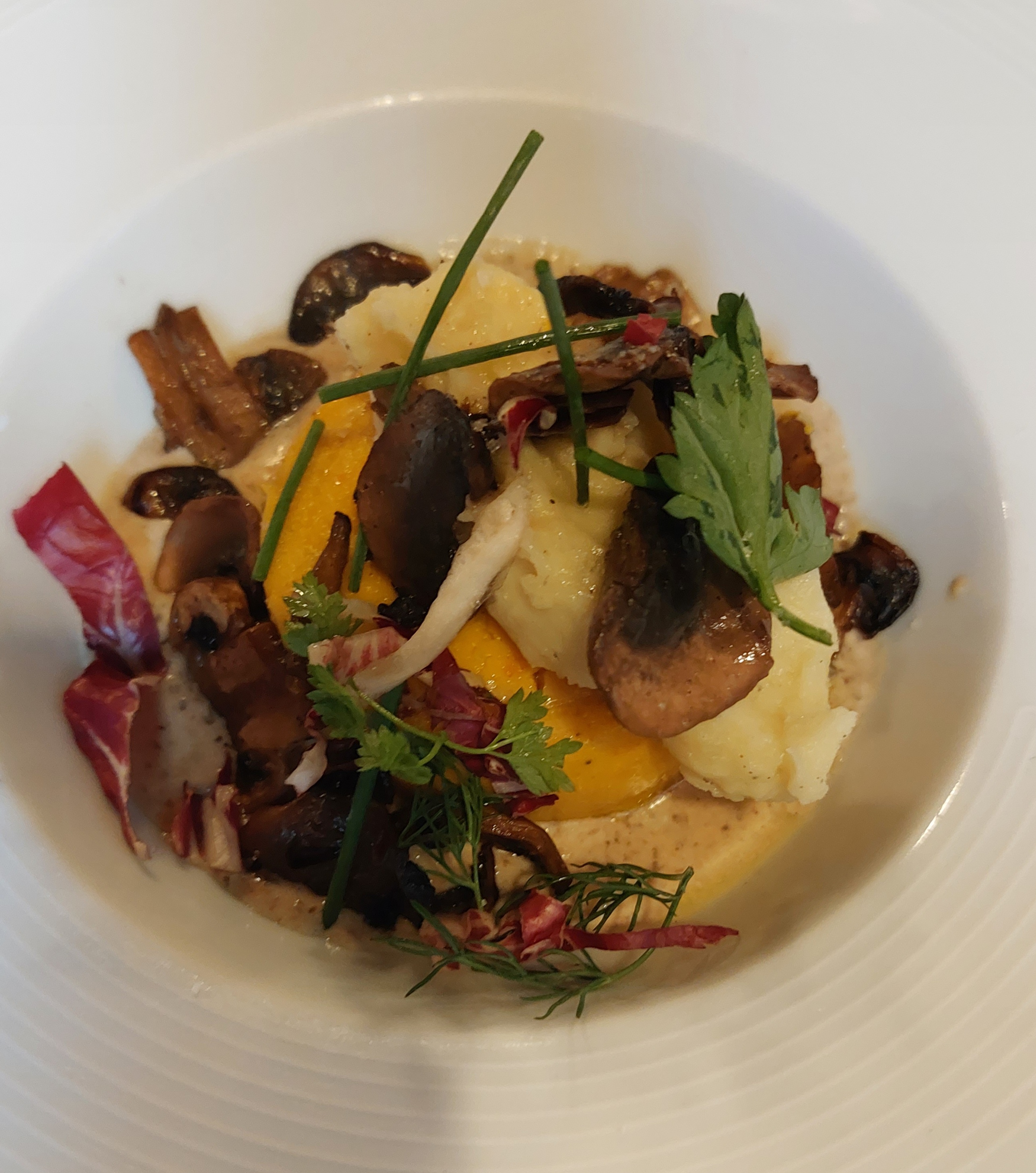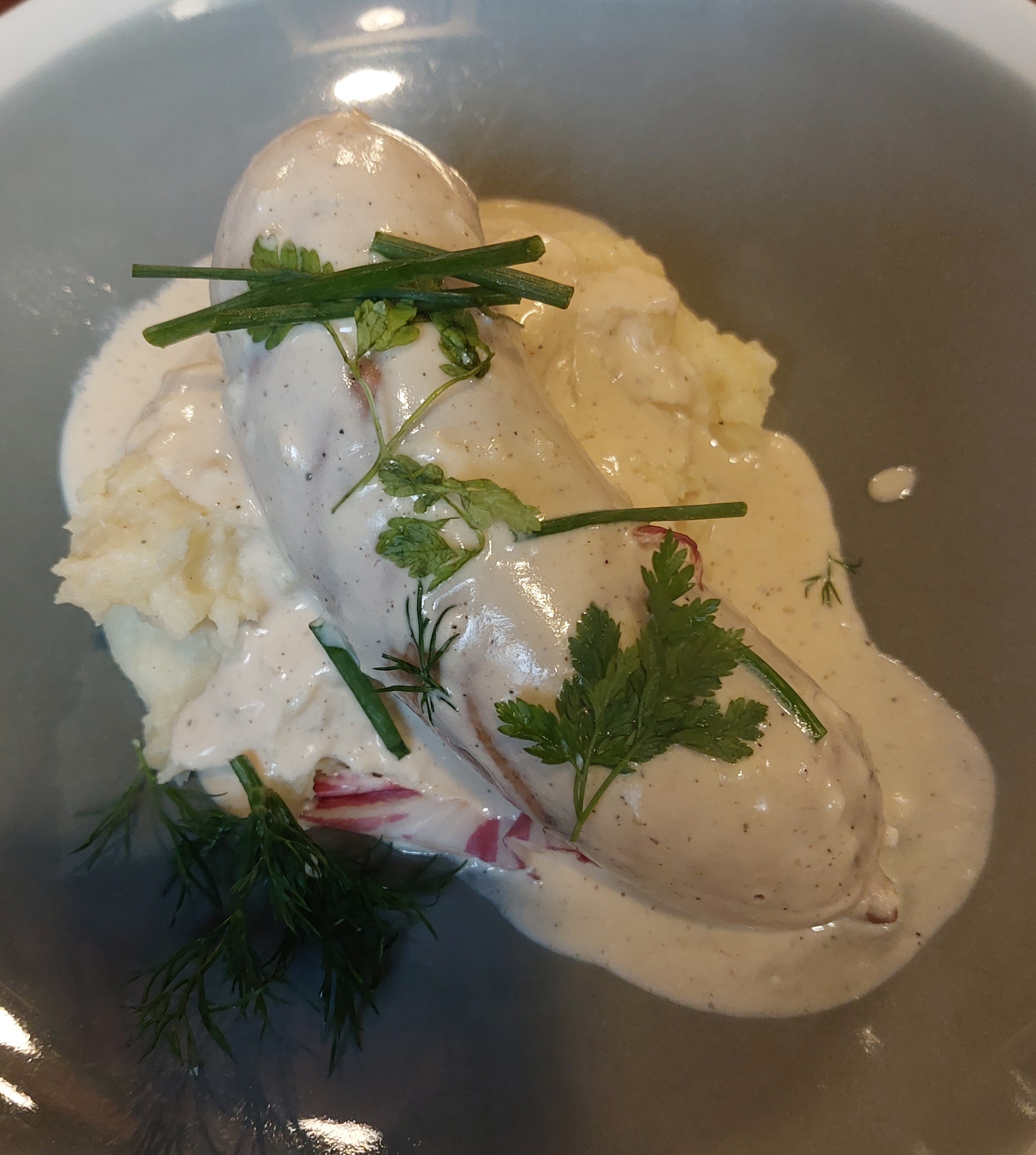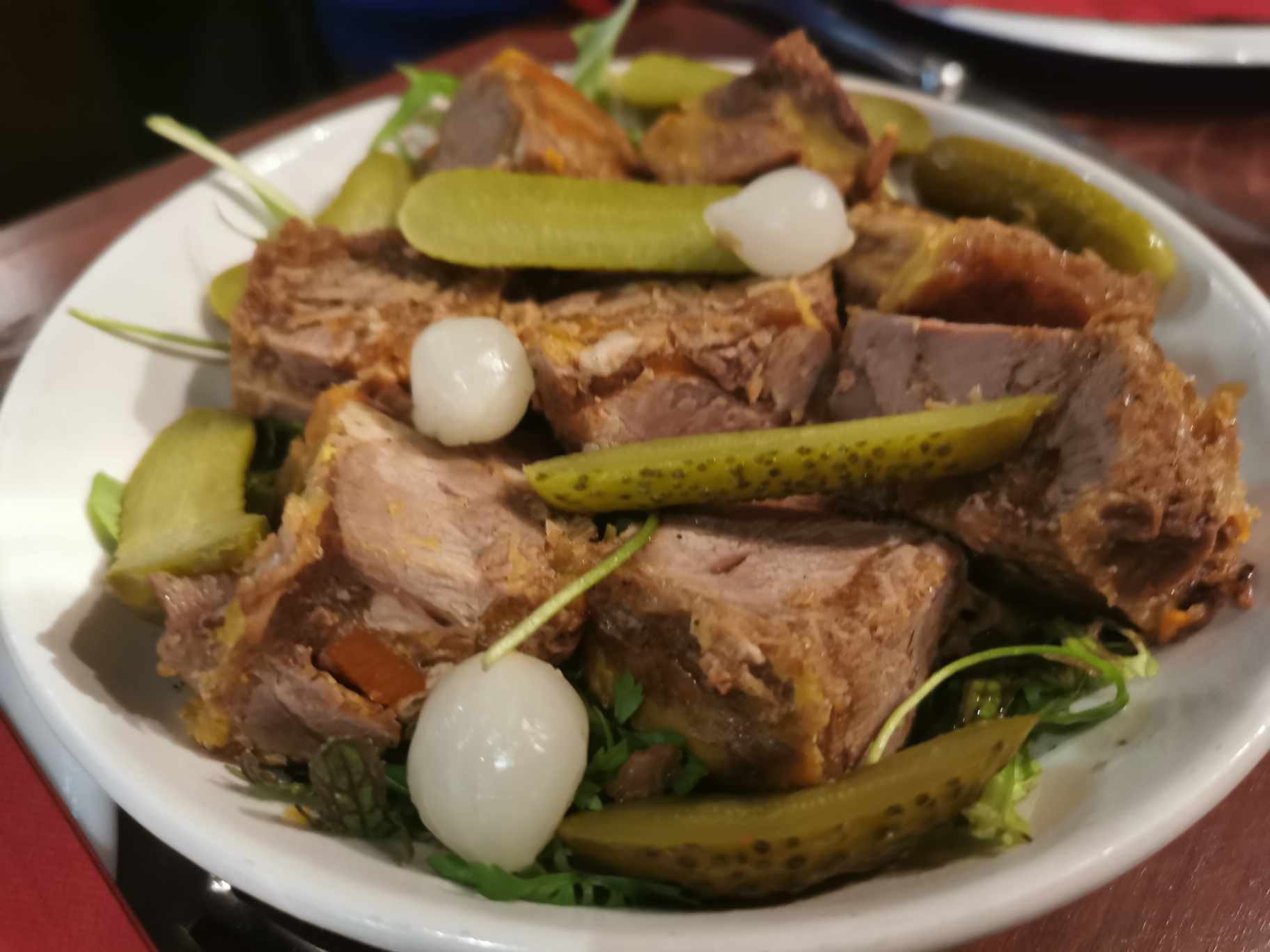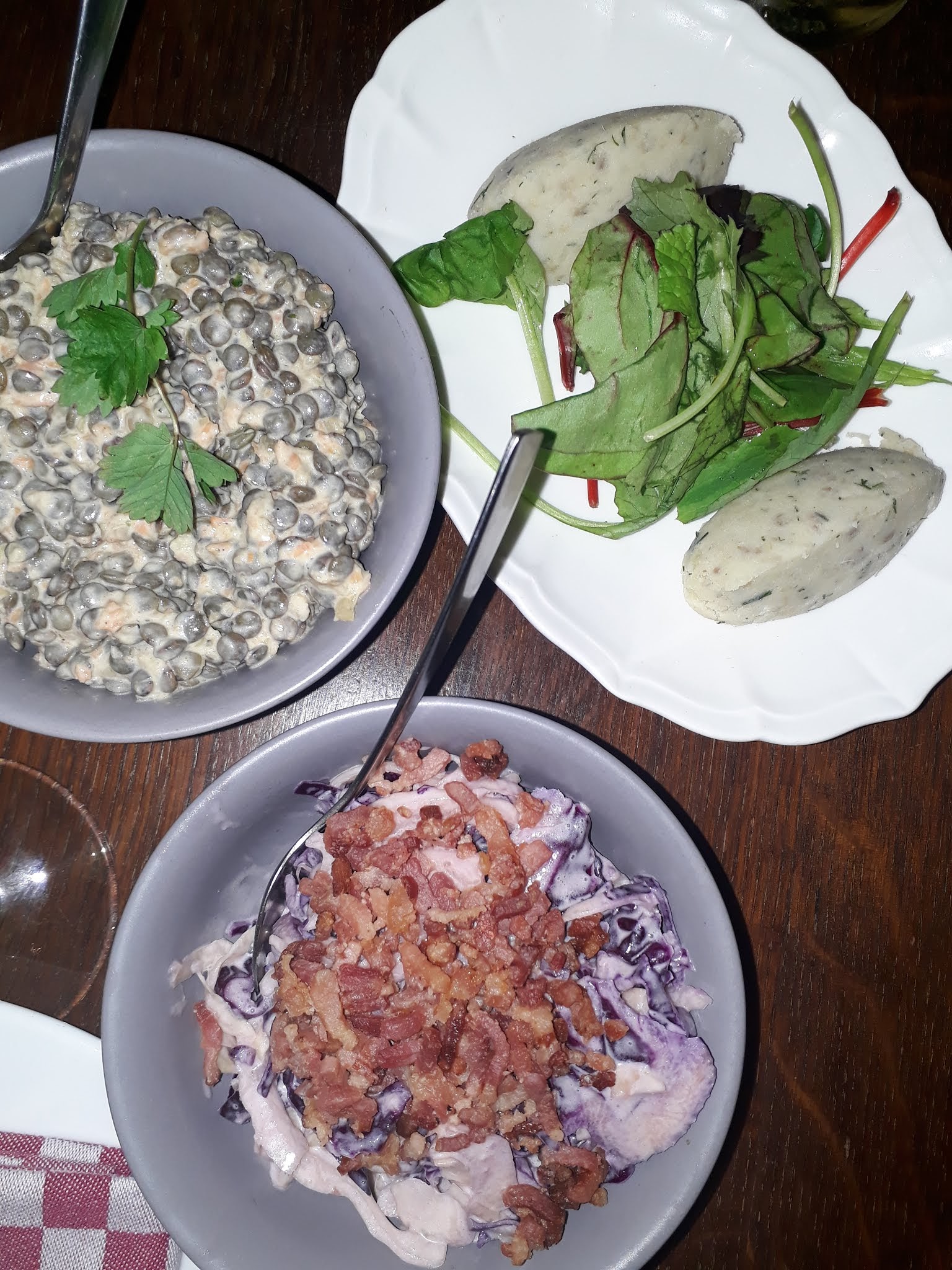 Menu à trois plats avec deux petits bonus pour un prix raisonnable. Ambiance chaleureuse et agréable, personnel serviable et gentil. En entrée, des salades maison du jour ont été préparées. Le plat principal et le dessert étaient au choix. Une friandise salée et du fromage sont des bonus après le plat principal. J'ai choisi les Quenelles comme plat principal.