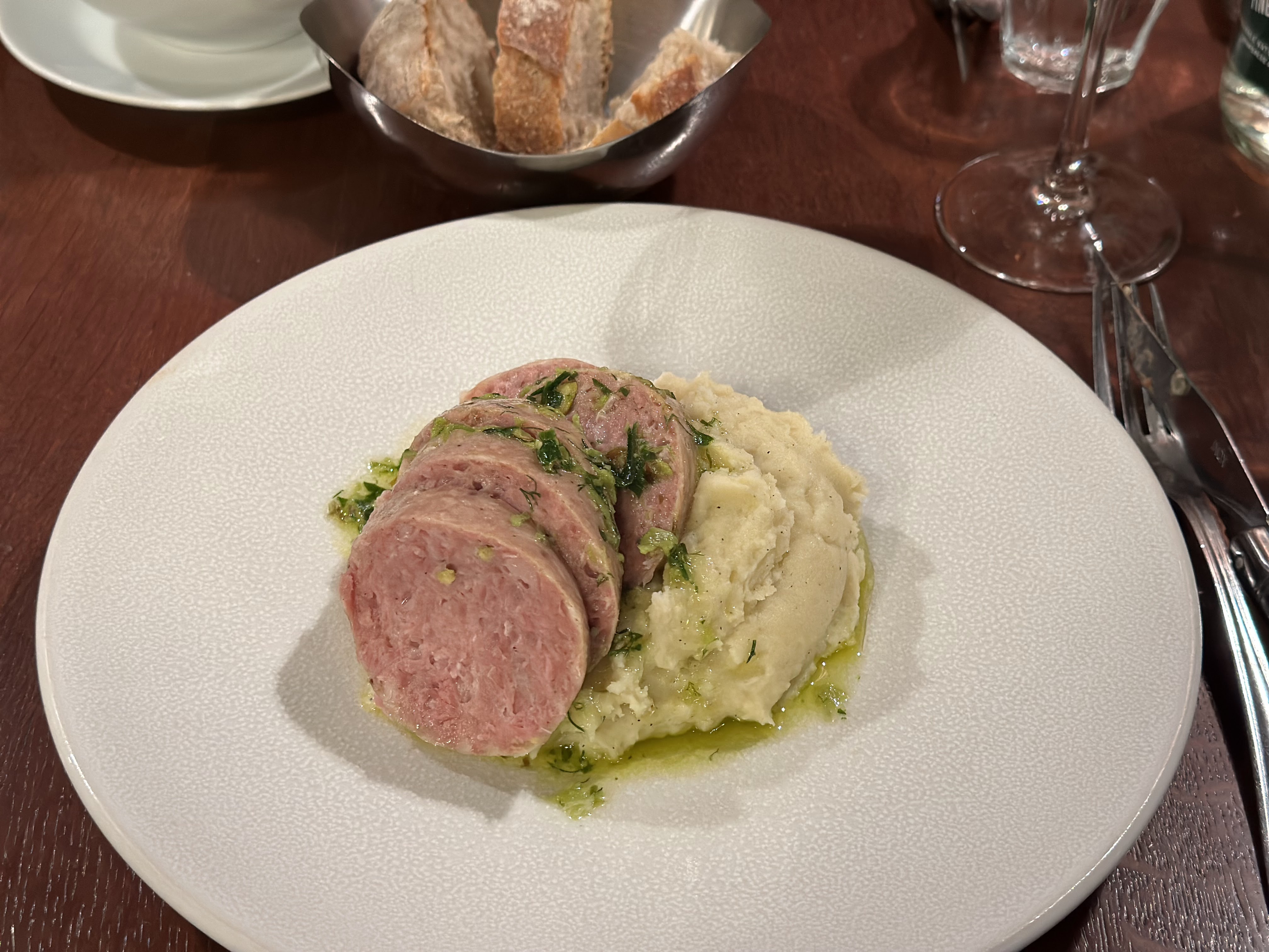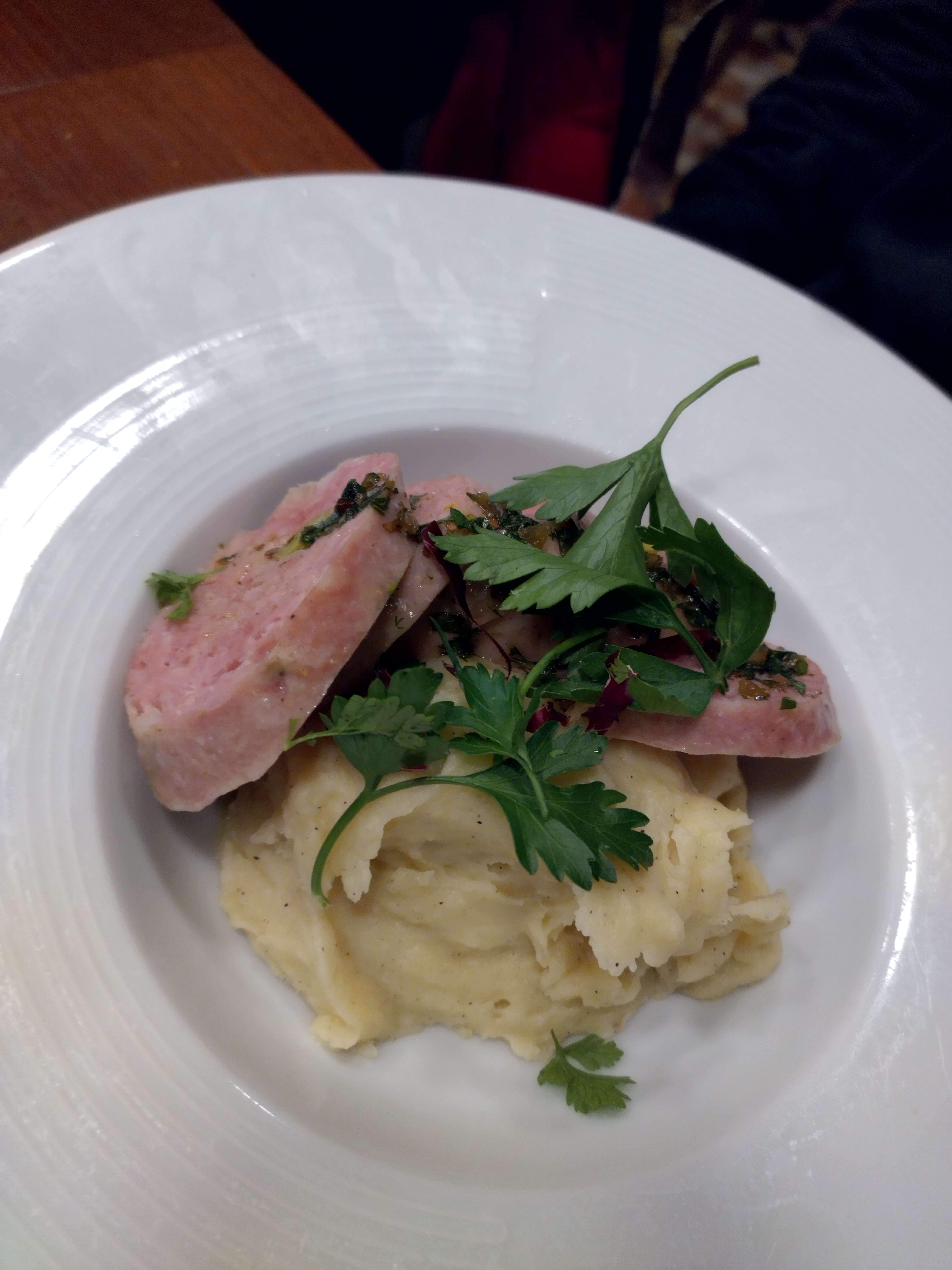 Cuisine lyonnaise authentique, saine et savoureuse, présentée par un personnel sympathique et efficace. J'ai beaucoup apprécié mon repas et je le recommande. La saucisse rôtie locale avec des poireaux et des pommes de terre sautés était un moment fort.
