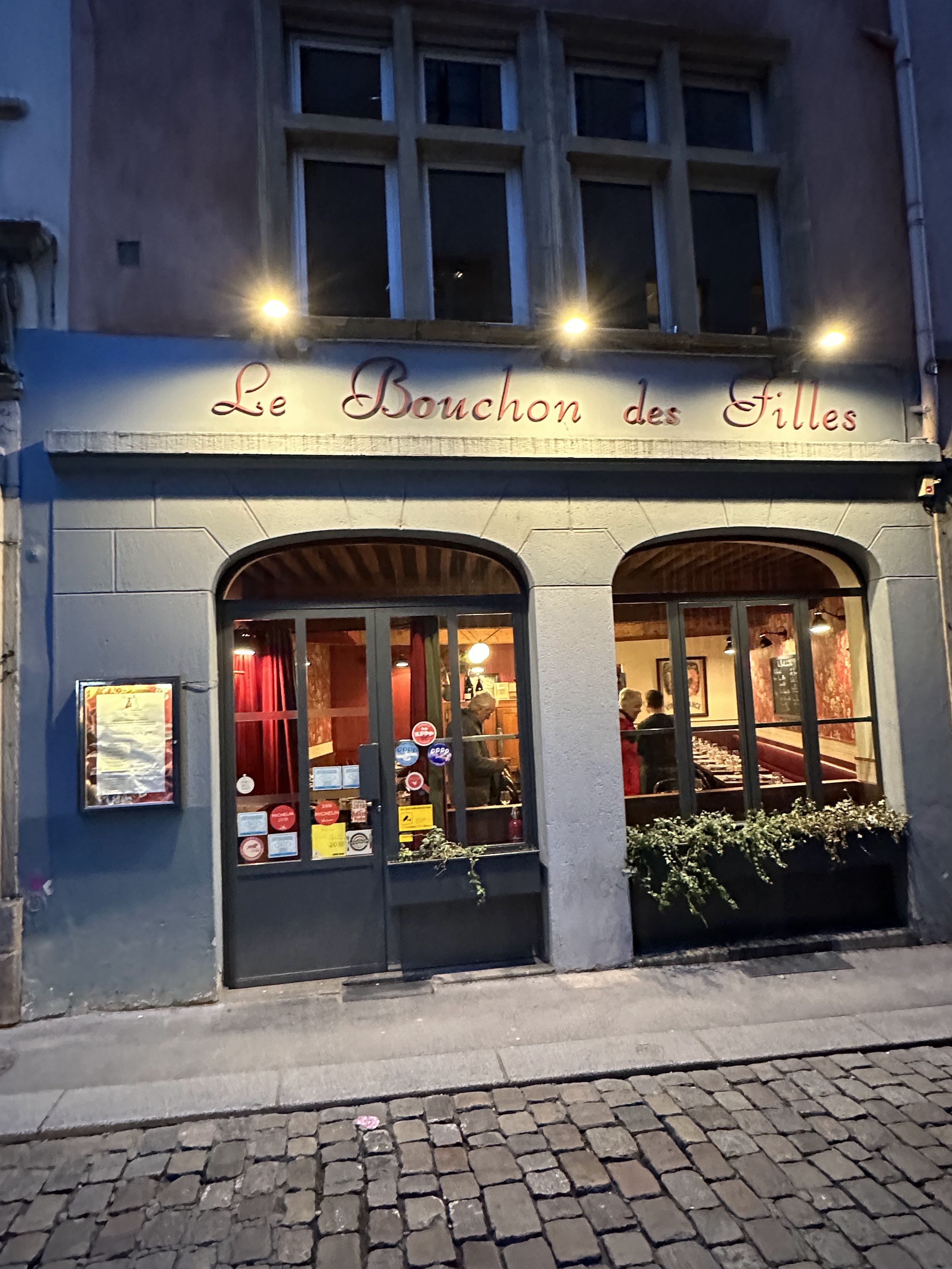 Super moment passé au bouchon des filles. A la carte, des classiques avec beaucoup de finesse, une équipe souriante, un excellent service dans un cadre charmant et convivial bien sûr pour conserver l'esprit bouchon. Parfait pour faire découvrir la cuisine lyonnaise à des amis de passage. 👍