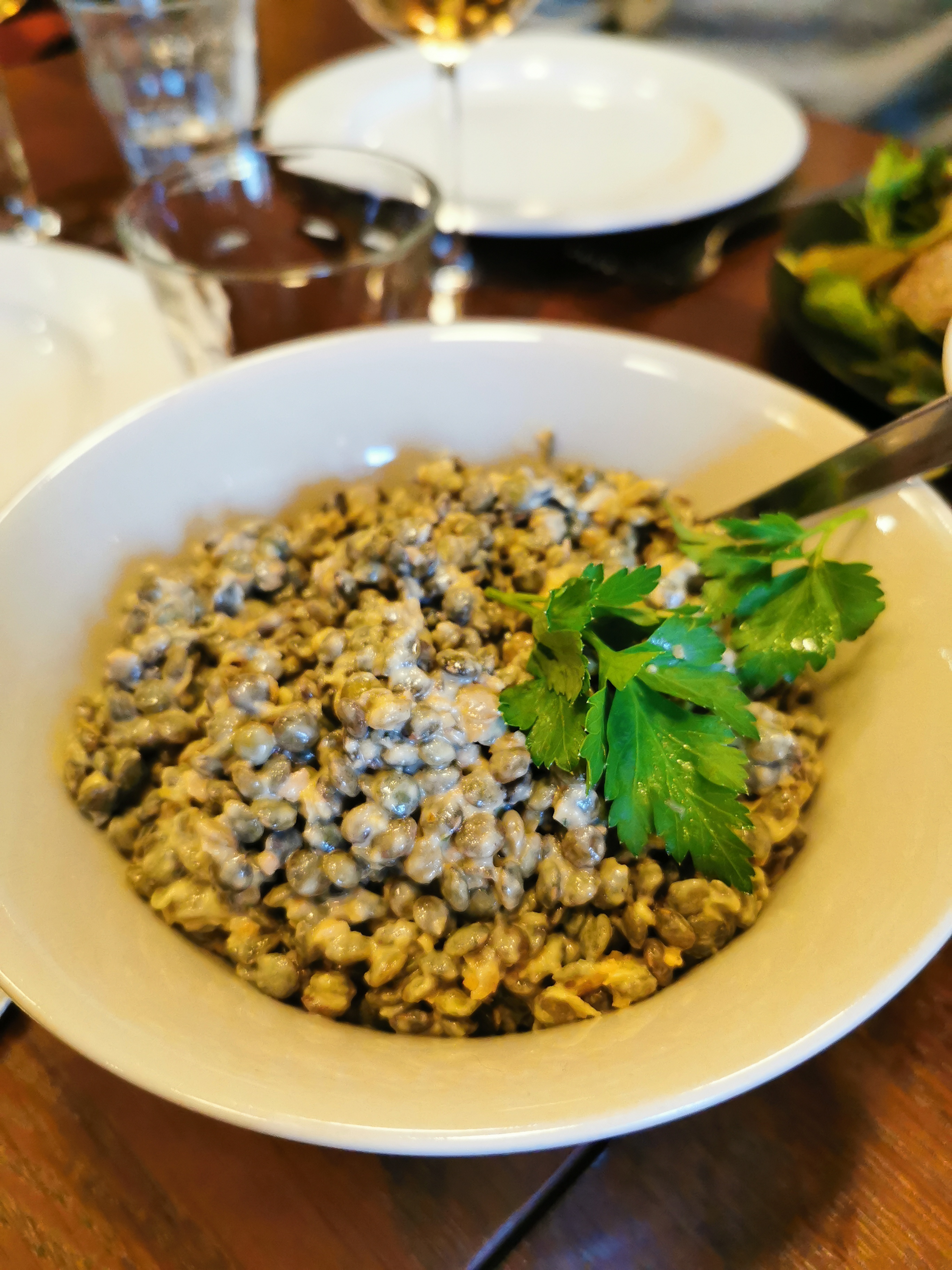 Incroyablement bonne nourriture et à la hauteur des meilleures que j'ai jamais mangées !!!! Très joli endroit petit et cosy avec une carte gastronomique qui mérite d'être recommandée aux autres. Je recommande particulièrement les lentilles que nous avons mangées en entrée et même si le menu change assez souvent, je ne peux qu'imaginer le goût des plats à venir. Je reviendrai à Lyon, et je reviendrai ici !