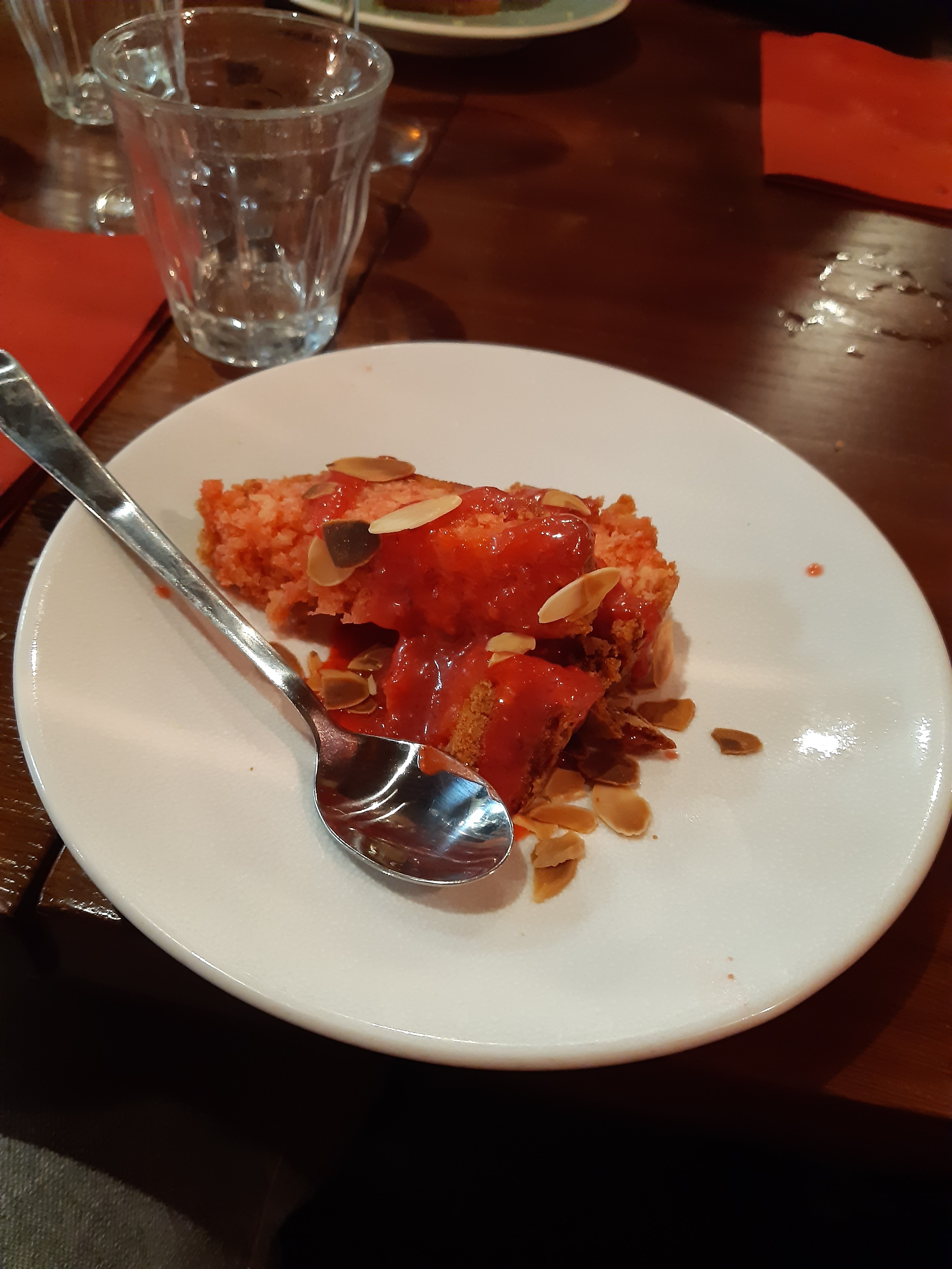 La rue où ce situe ce restaurant n'est pas très agréable à traverser de nuit, mais lorsqu'on pousse les portes de cet établissement, la lumière et la chaleur nous envahit. L'accueil est franche et nous sommes placés dans un coin, un peu à l'étroit certes, mais on sent une certaine familiarité, comme si nous allions manger chez nos grands-parents avec toute la famille. Le service est rapide et les plats sont envoyés un à un. L'entrée, composée de 3 petits plats à partager, étaient corrects mais sans plus. On enchaîne avec les plats, plutôt bon dans l'ensemble, mais rien d'inoubliable si ce n'est là quantité ! A tel point que, le serveur nous a gentiment remonté les bretelles lorsque ma chérie n'a pas terminé son assiette, lui disant qu'elle allait ramener les restes chez elle. Puis vient le fromage, et enfin le dessert. J'ai pris le cheesecake, malheureusement insipide et sans nul doute le moins savoureux que j'ai pu goûter jusqu'à présent. Au final, une expérience pour le moins partagée, une cuisine quantitative plus que qualitative avec un service franchouillard mais pas désagréable le tout pour un prix atteignant une belle moyenne de 70€.