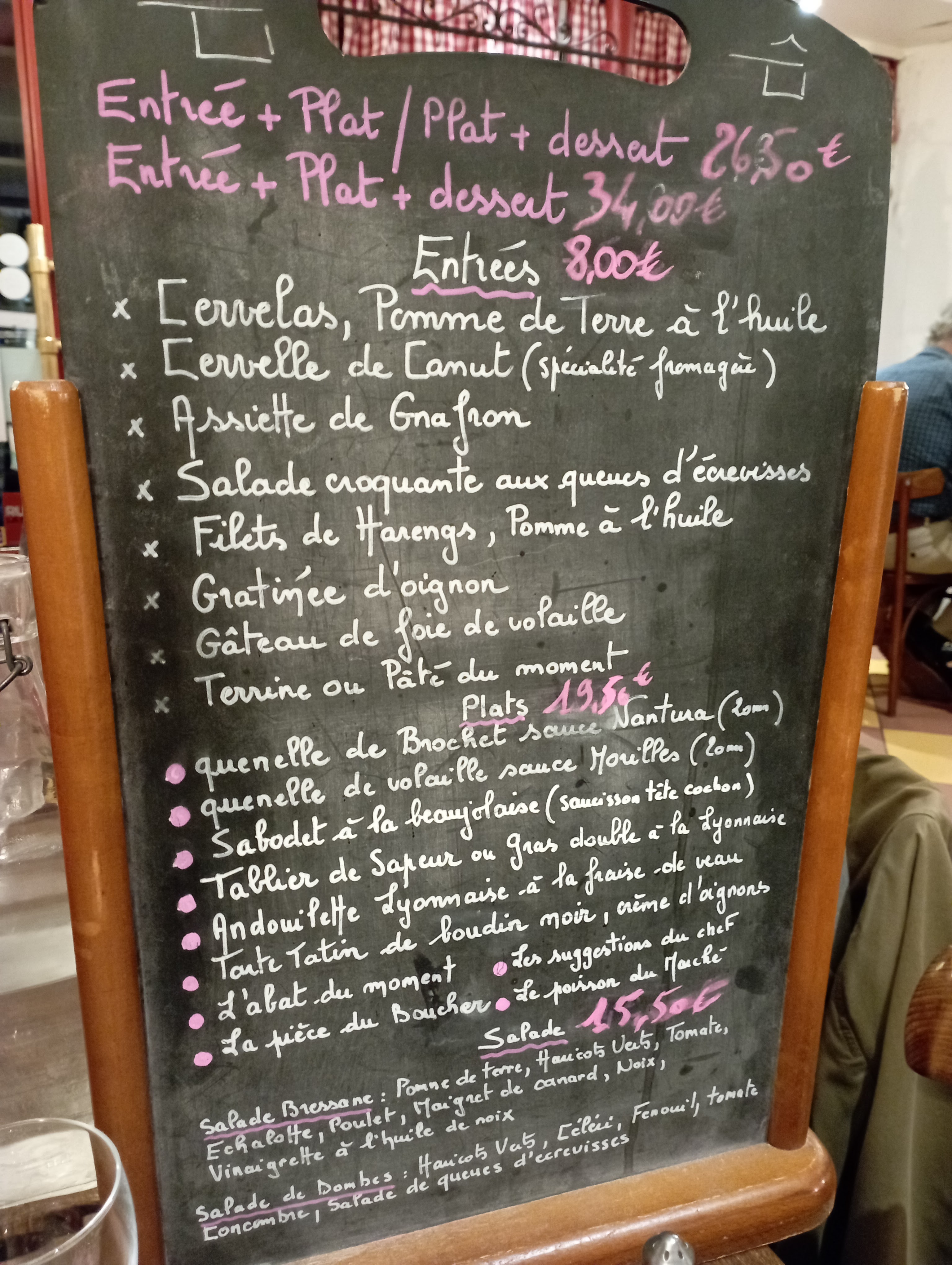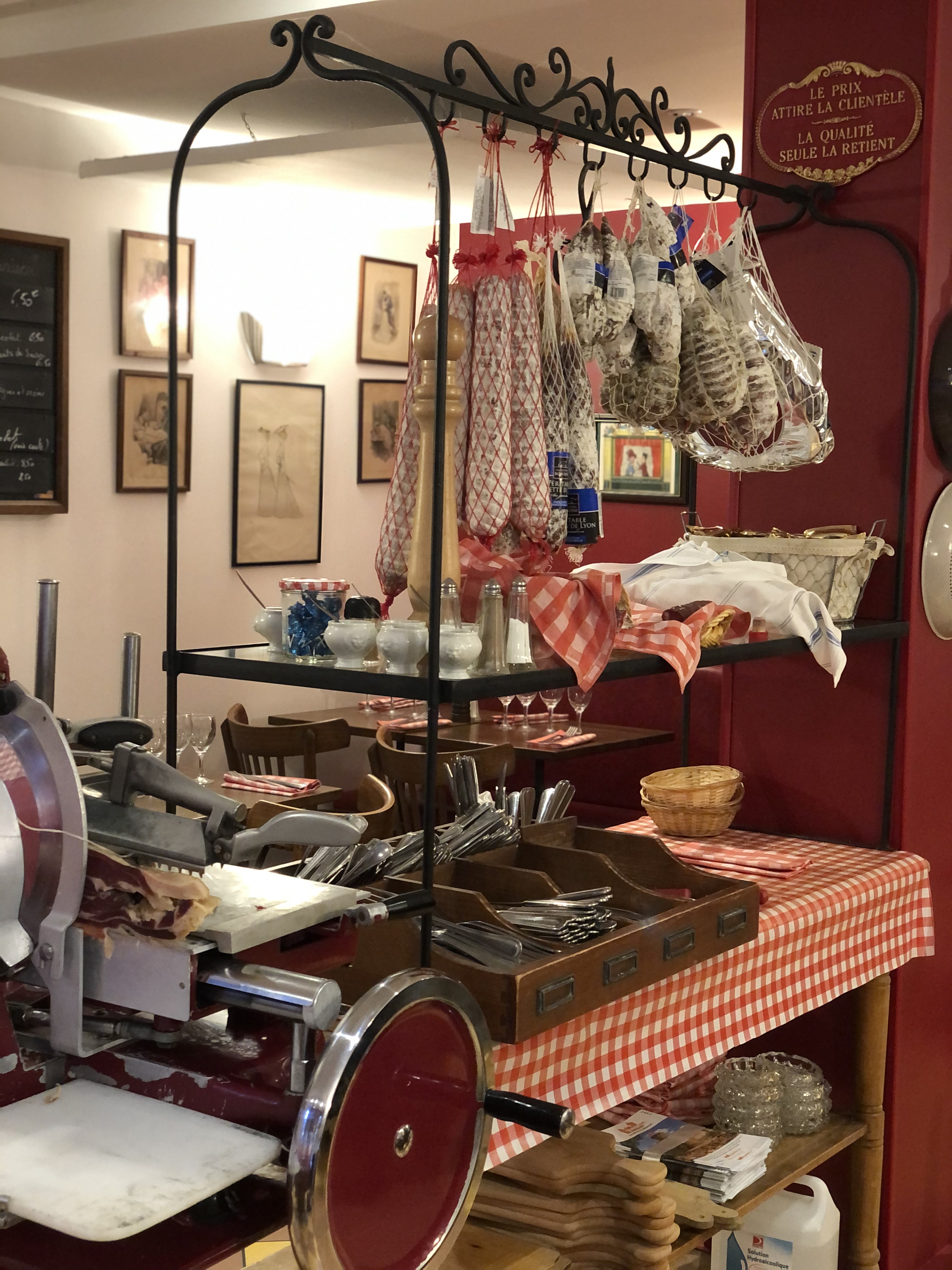 Restaurant à la déco typique du bouchon lyonnais. A la lecture de la carte, pas de doute, c'est bien un bouchon ! Si vous aimez cette cuisine, je vous recommande cette adresse à Versailles.
