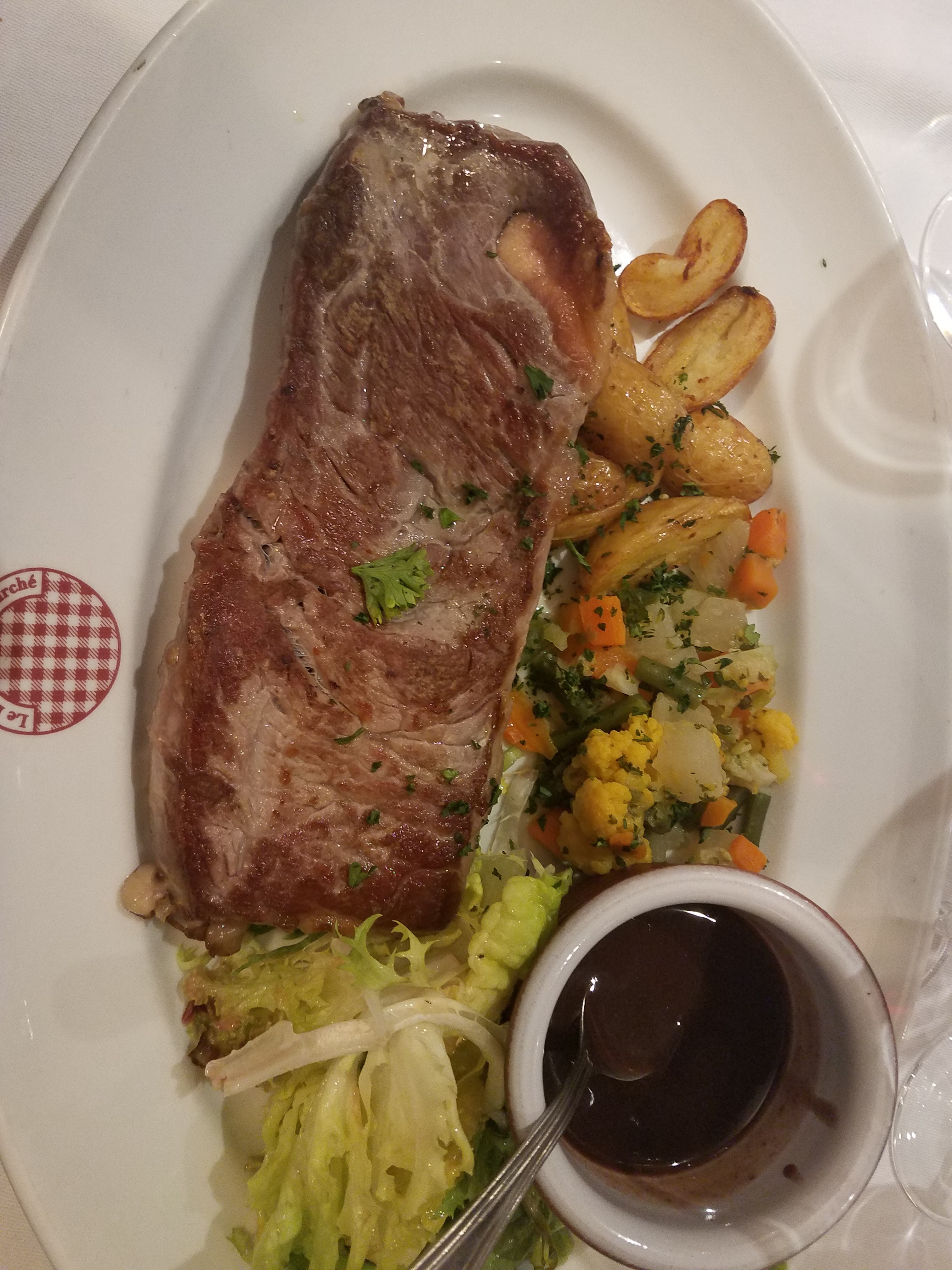 Un vrai moment de plaisir et de cuisine sympa ! De retour de voyage à l’étranger , une excellente façon de se remettre au diapason de notre délicieuse cuisine. Un accueil au top, des entrées XXL, du goût , de l’arôme! Vive la France et ses terroirs et merci au bouchon du marché de nous régaler avec autant de simplicité et de générosité .