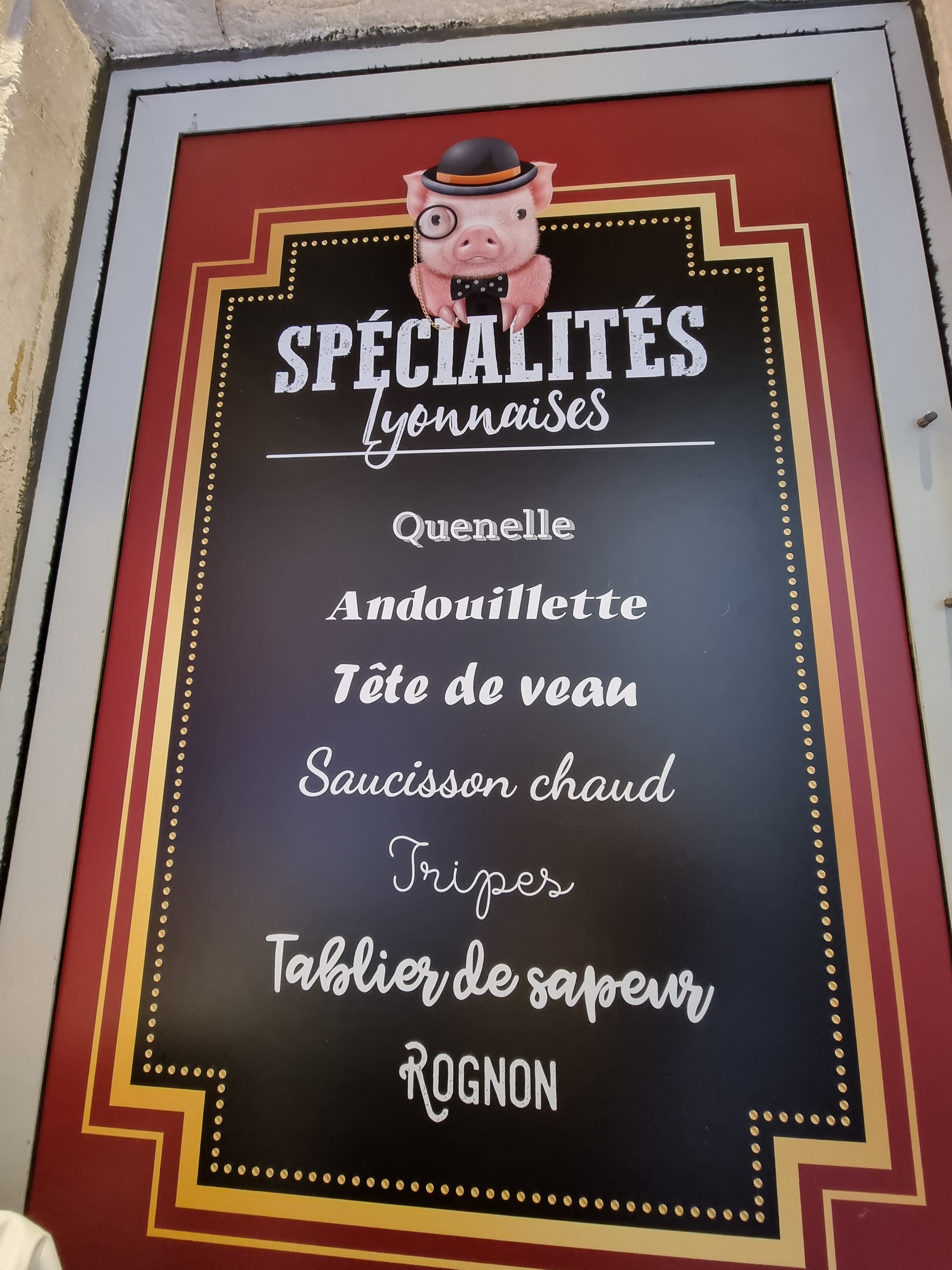 La carte inspire confiance, vous y verrez la provenance des viandes et le jargon propre à la cuisine lyonnaise (idéal pour les touristes et les non initiés). Le cadre est très beau, la nourriture délicieuse et le service est parfait. Je recommande vivement.