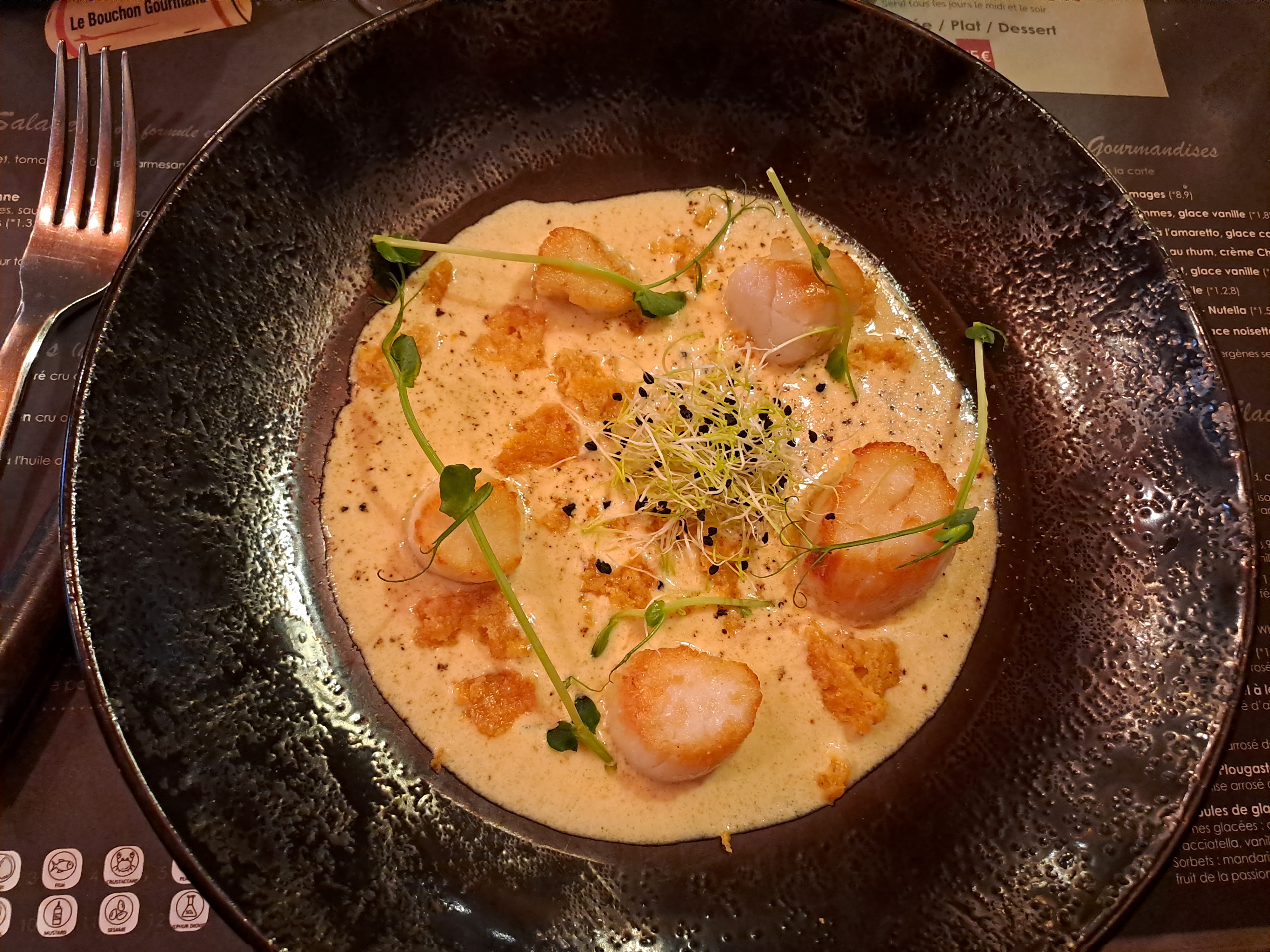 Très bon moment passé au Bouchon Gourmand, le service était un peu speed, difficile de commander ou d’attraper un serveur mais la nourriture et le lieu étaient vraiment parfait. On a adoré !