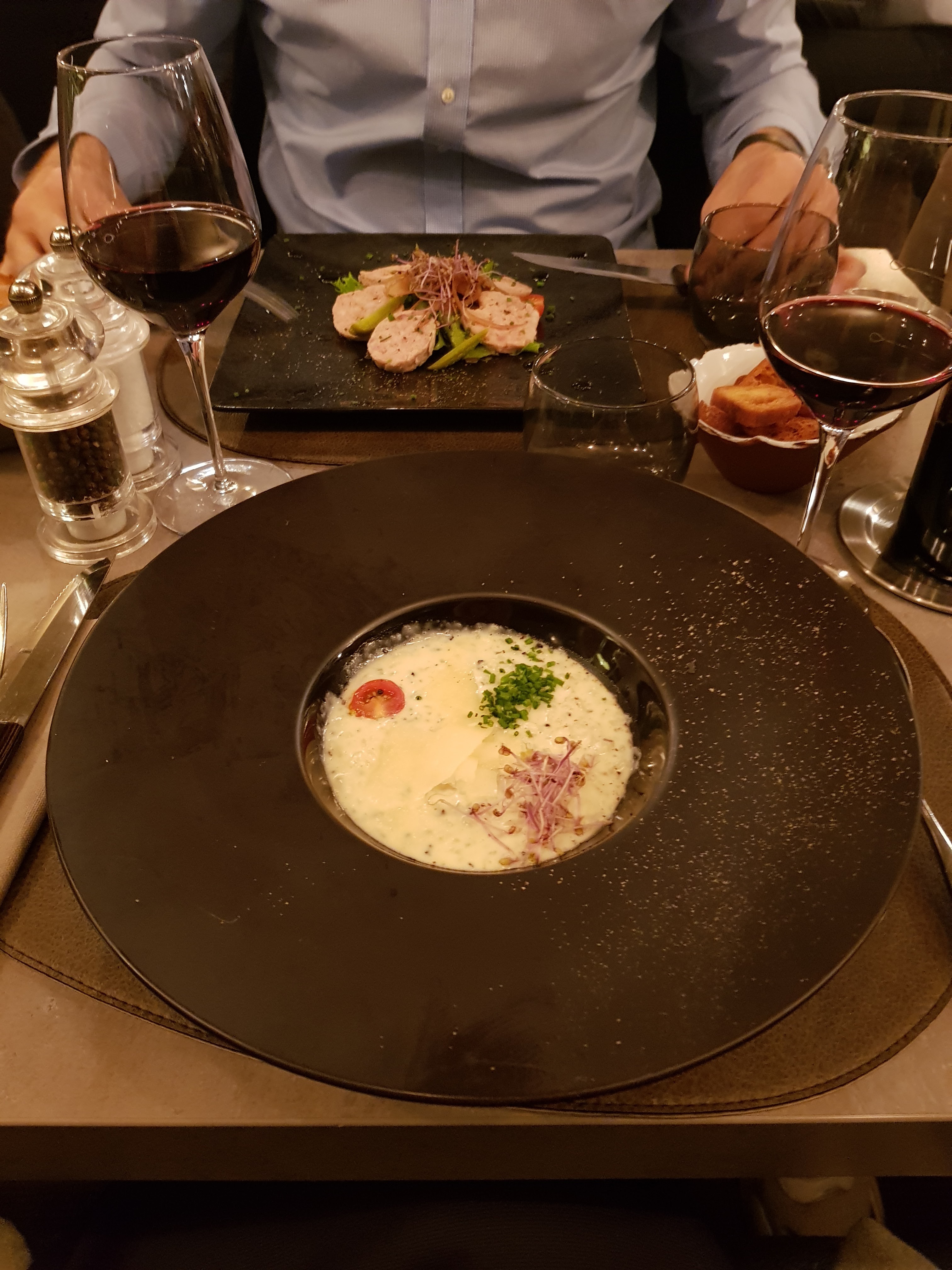 Dîner en tête à tête avec ma femme. Un sans faute, tout a été parfait. Nous nous sommes régalés. Le personnel est très accueillant. Ambiance top pour les dîners entre amoureux. Je recommande fortement !!