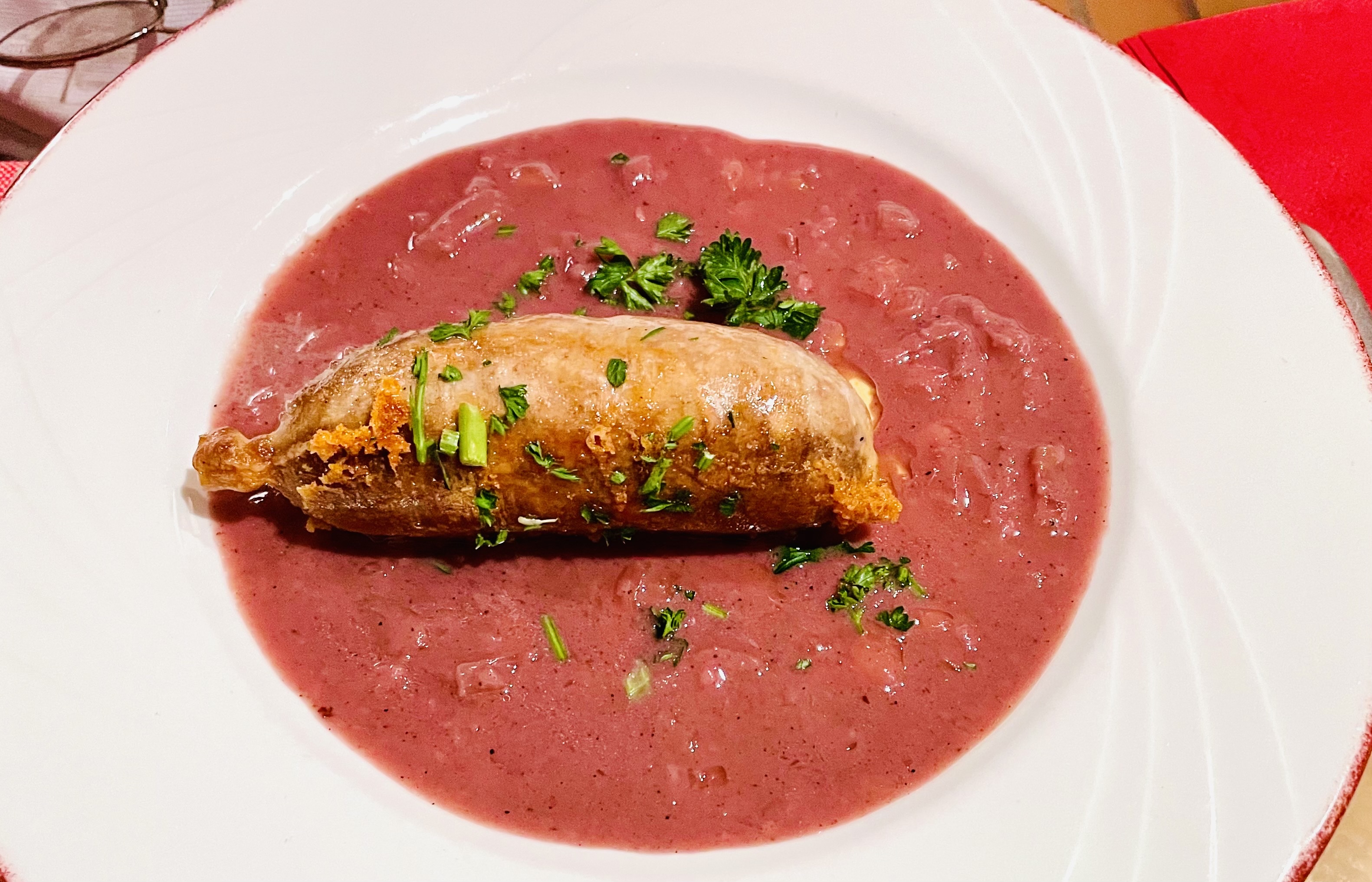 Il y avait quelque chose qui n'allait pas dans le service ce jour-là, dans la mesure où il n'y avait qu'un seul employé pour tout faire : prendre les commandes, cuisiner, servir, etc. Mais la jeune femme qui s'occupait de tout cela avait énormément d'enthousiasme pour la manière dont étaient présentées les classiques lyonnaises. préparés à partir de rien, y compris la quenelle et le boudin noir, que la plupart des autres restaurants locaux commanderaient simplement. Nous avons mangé la quenelle de poisson et c'était super.
