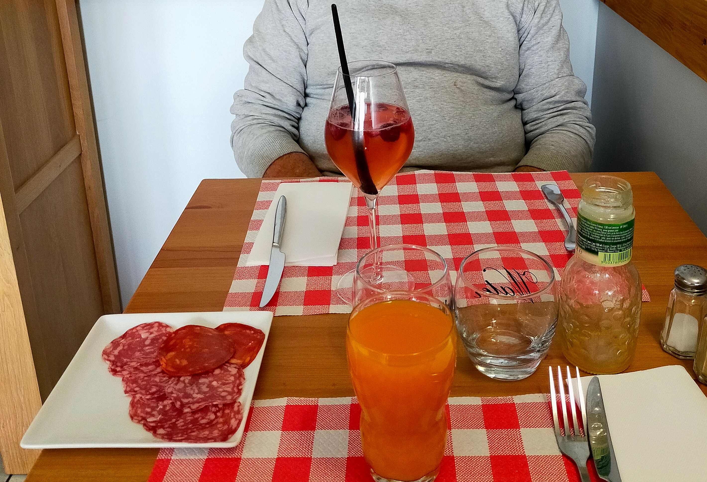 Pas eu le temps d’apprécier notre verre apéritif tranquillement que notre assiette repas était déjà servie. Bien dommage.