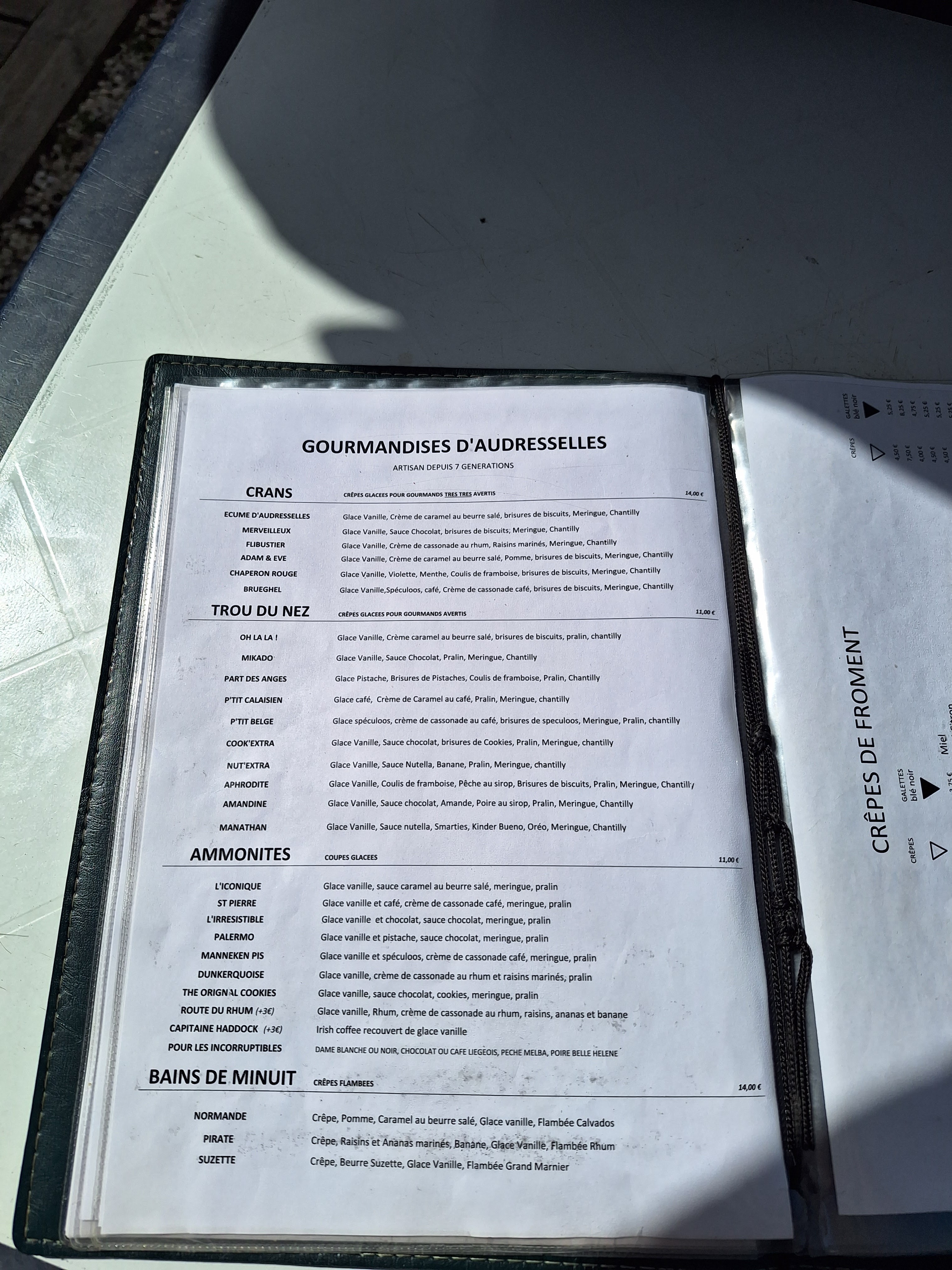 Délicieuses crêpes glacées spécialité « cran ». Joyau caché sur la magnifique cote opale.