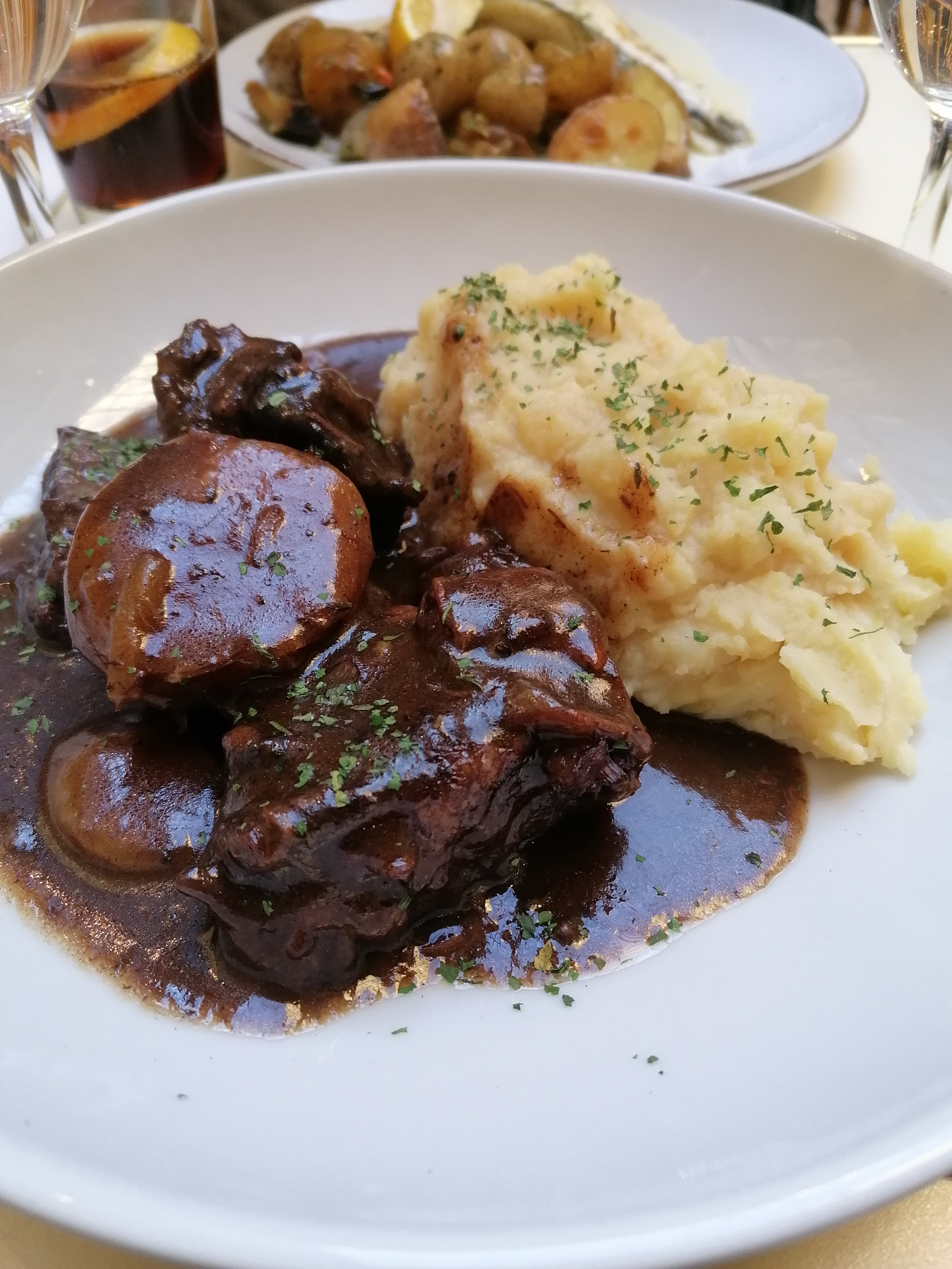 Au déjeuner, un menu à 18€ très bien avec des plats bien français comme la tête de veau.