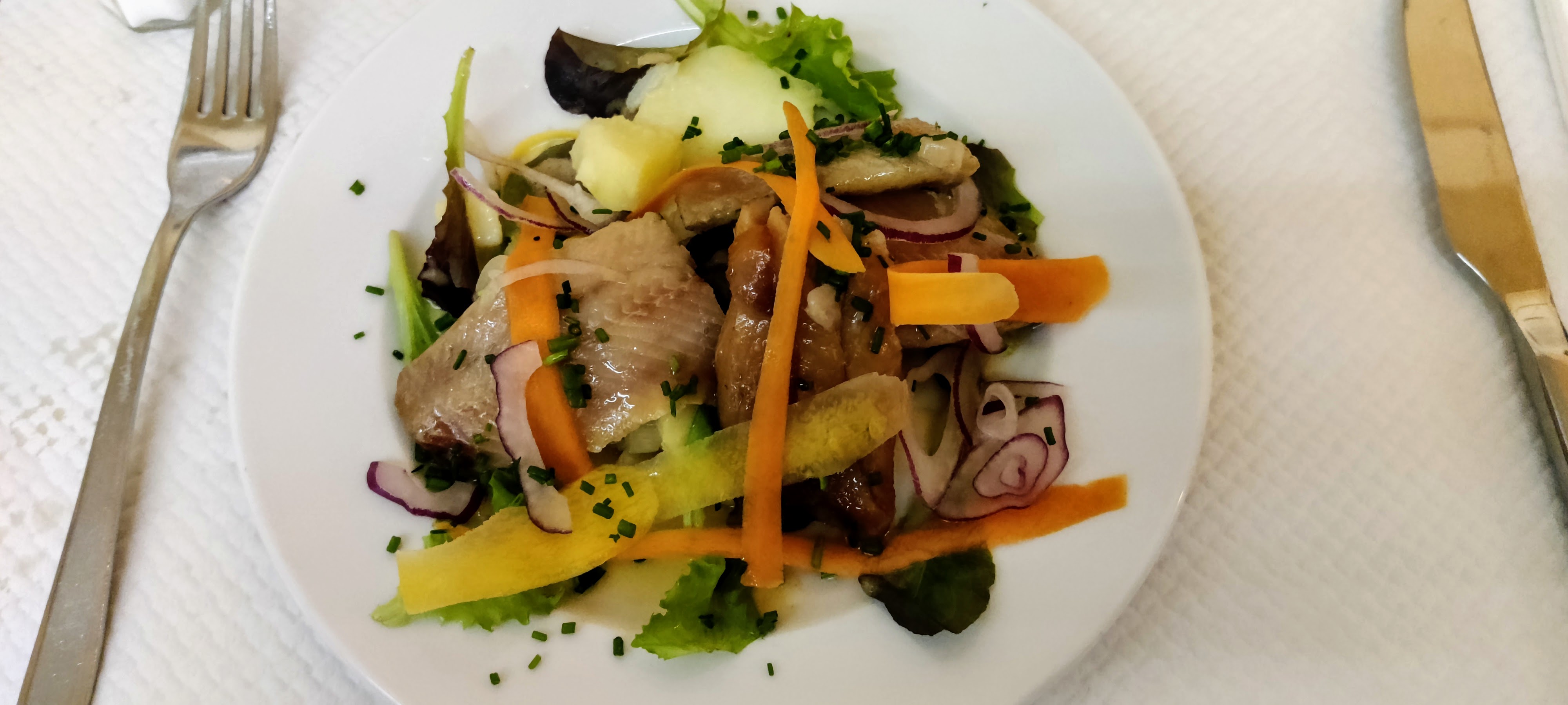 Cuisine traditionnelle préparée avec des produits de qualité et de superbes légumes bio de la région. Je recommande vivement !