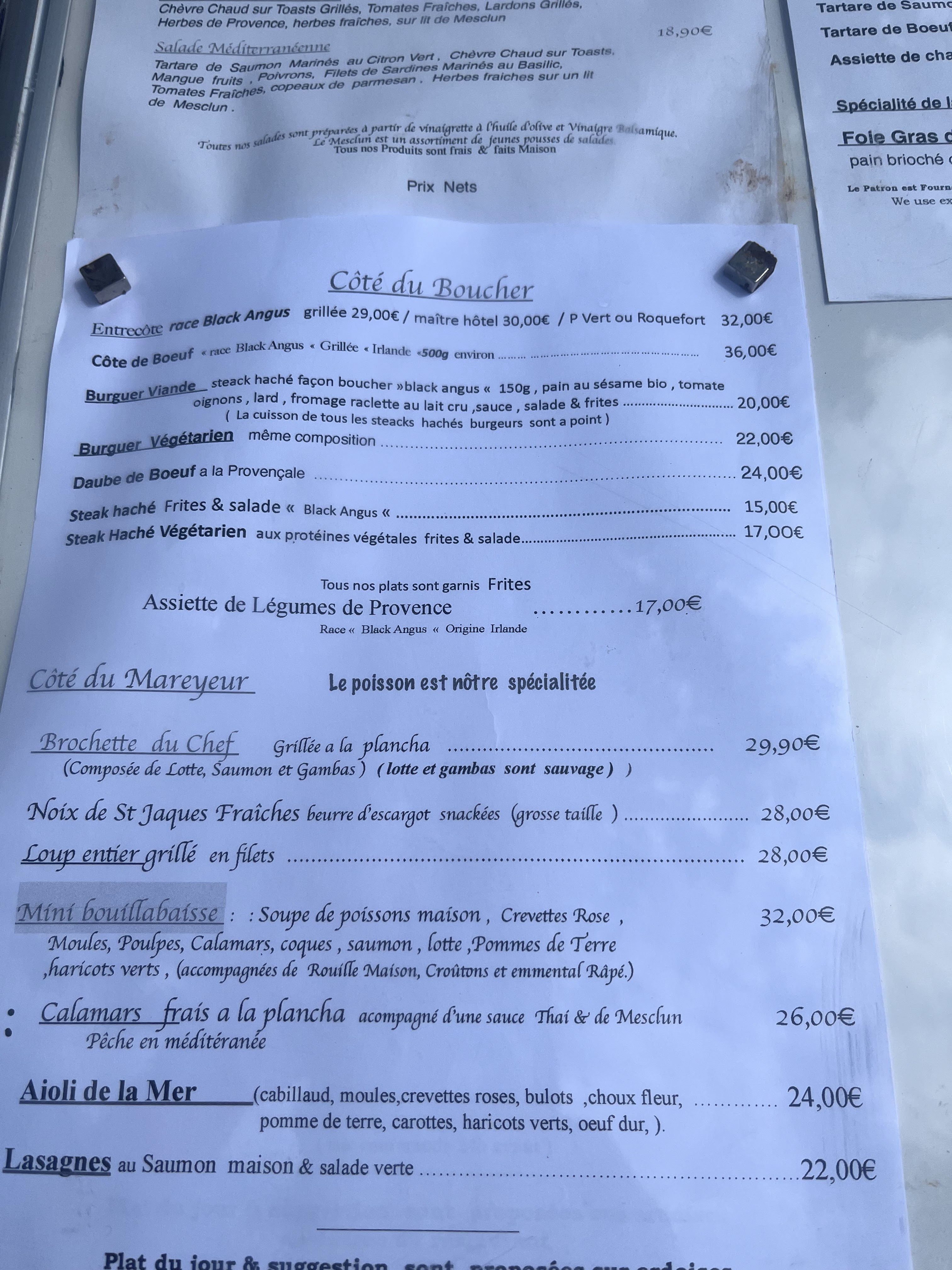 Très bon accueil mais plat décevant surtout l aïoli et sa sauce qui n a pas le goût du vrai aïoli. Addition élevée pour ce que nous avons mangé. Dommage car lieu sympa.