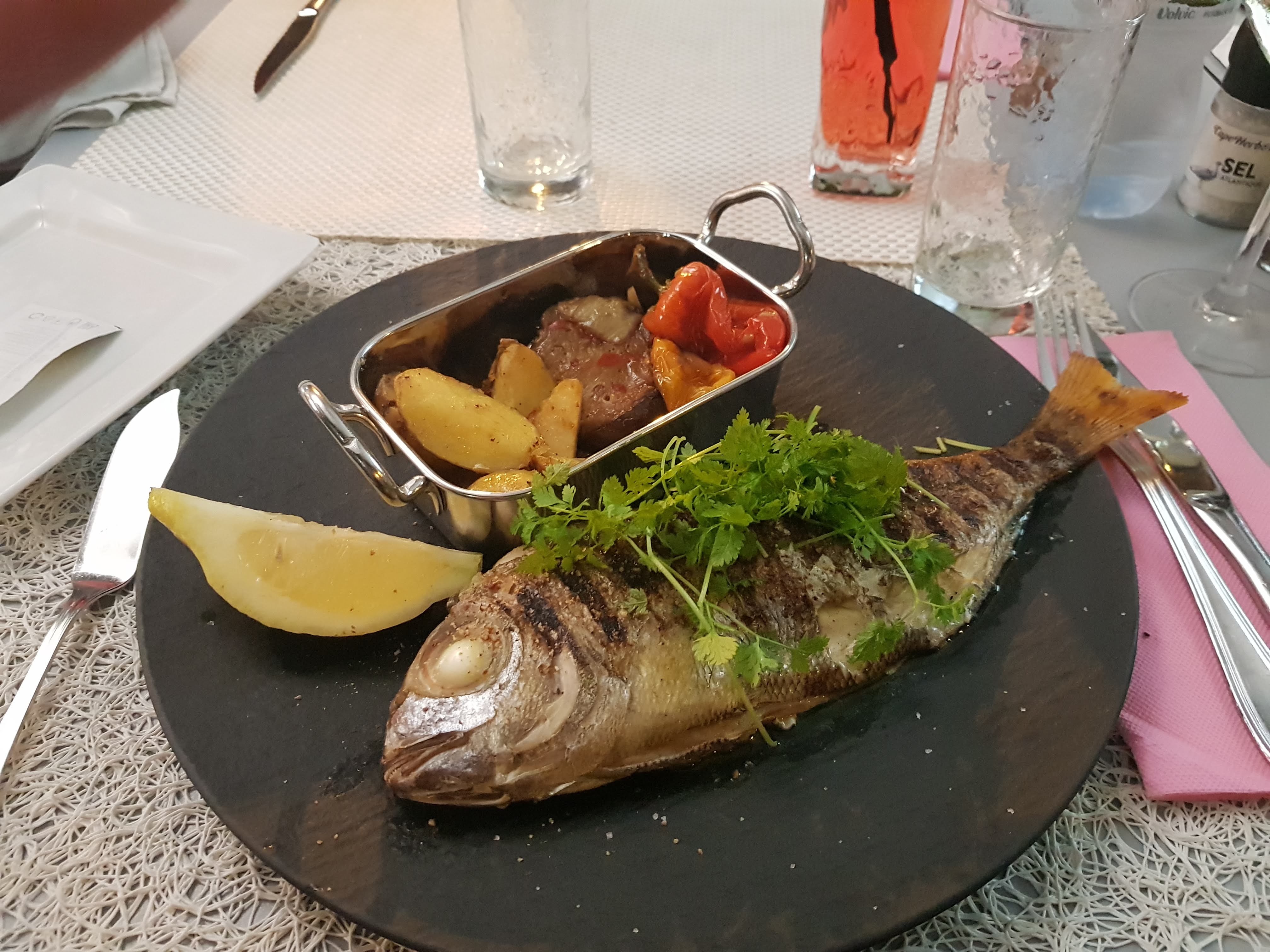 Produit frais et local nous avons mangé tous les deux une dorade rose servi avec des légumes de Provence bien relevés et un petit risotto rien à redire