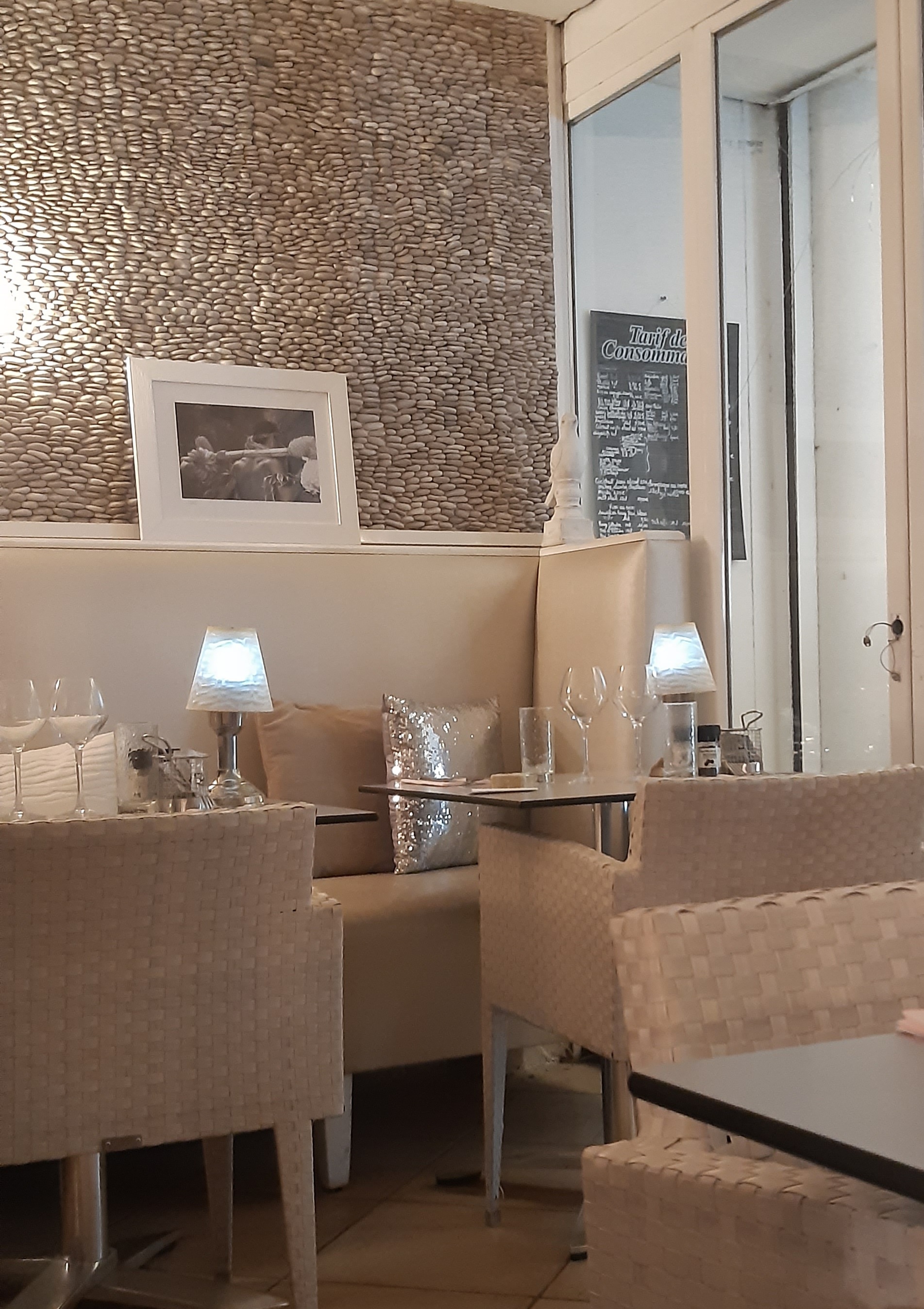 Nous n’avons pas pu consommer car au bout de 20 minutes on nous avait même pas dit bonjour 😕 Par contre nous avons pu voir les prix exorbitants affichés pour les boissons et la facturation des carafes d’eau, c’est triste