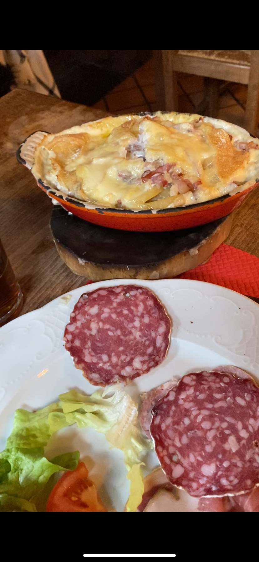Super moment ! Nous avons pris la raclette de saint nectaire pour deux avec 1 demi saint nectaire chacun ! Succulent ! On ajoute un service au top plein de gentillesse et d humour ! Et un décor à l ancienne qui fait tout son charme !