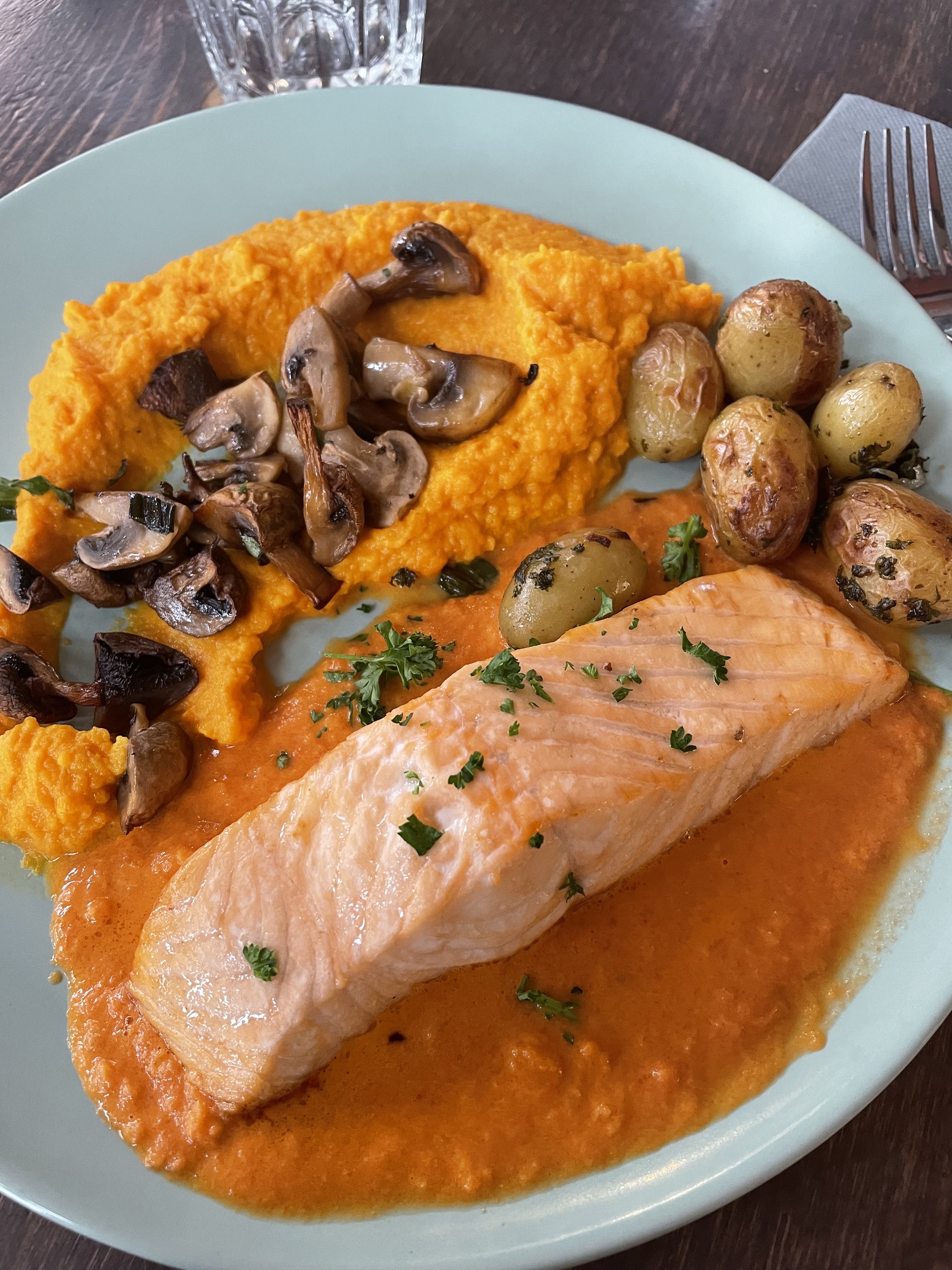 Ambiance chaleureuse, carte gourmande et originale, service détendu et sympa. Un poil bruyant en heure d'affluence pour les sensibles aux sons, mais on s'y acclimate vite portée par l'ambiance comme à la maison. Une bonne adresse.