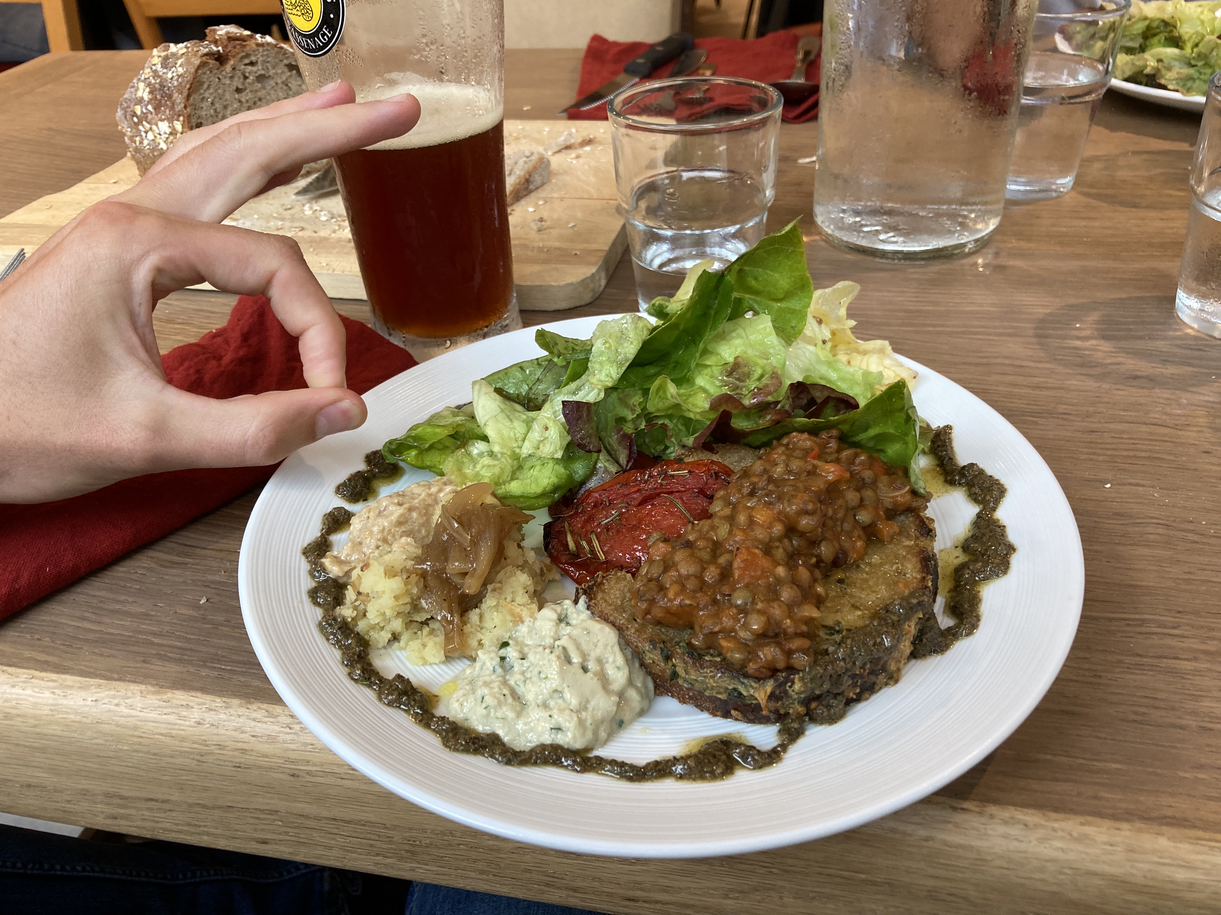 Super restaurant, avec des gens sympas qui essaient de bien faire (produits locaux, pas de viande, etc.) Le menu du midi a un excellent rapport qualité-prix (même si on choisit de payer 15 euros). J'imagine que ça peut varier en fonction des jours, mais pour moi, tout était très bon, de la bière jusqu'au café.