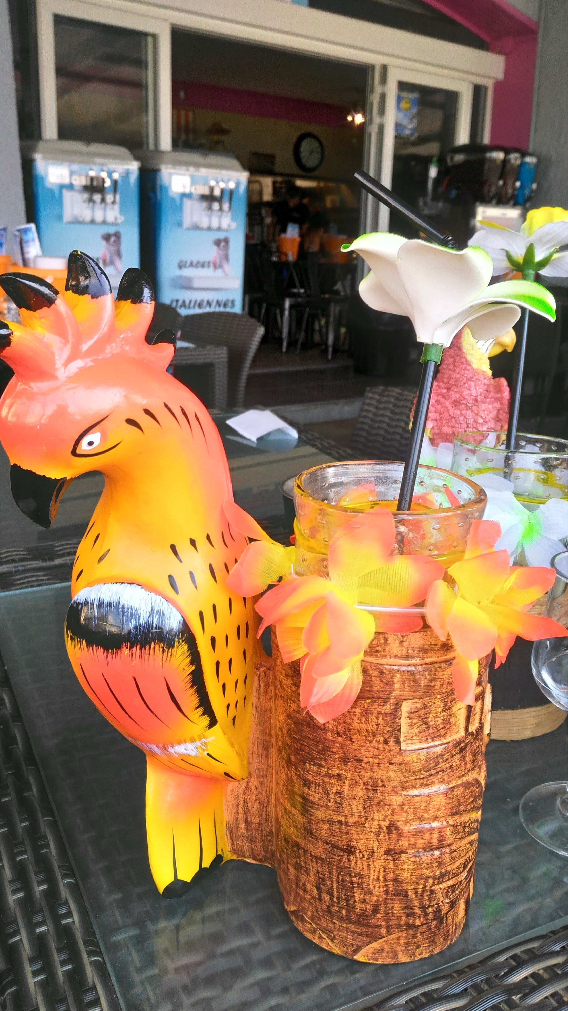 Cocktails très sympa, bien chargés, et joliment présentés (avec un bracelet à fleurs offert) Moules et frites à volonté très bonnes (mais attention, ce sont des moules sur lesquelles sont mises des sauces, et non des moules cuites directement dans la sauce) Desserts copieux (en tout cas les glaces) avec petit souvenir porte-clef Jolie vue sur la mer Mais personnel très speed et peu aimable, voire peu agréable, l'impression d'être de trop, et voir le cuisinier gratter ses croûtes de coude dans la cuisine, pas foufou Au total, pour 2 cocktails alcoolisés, deux moules frites à volonté, et deux glaces = 85€