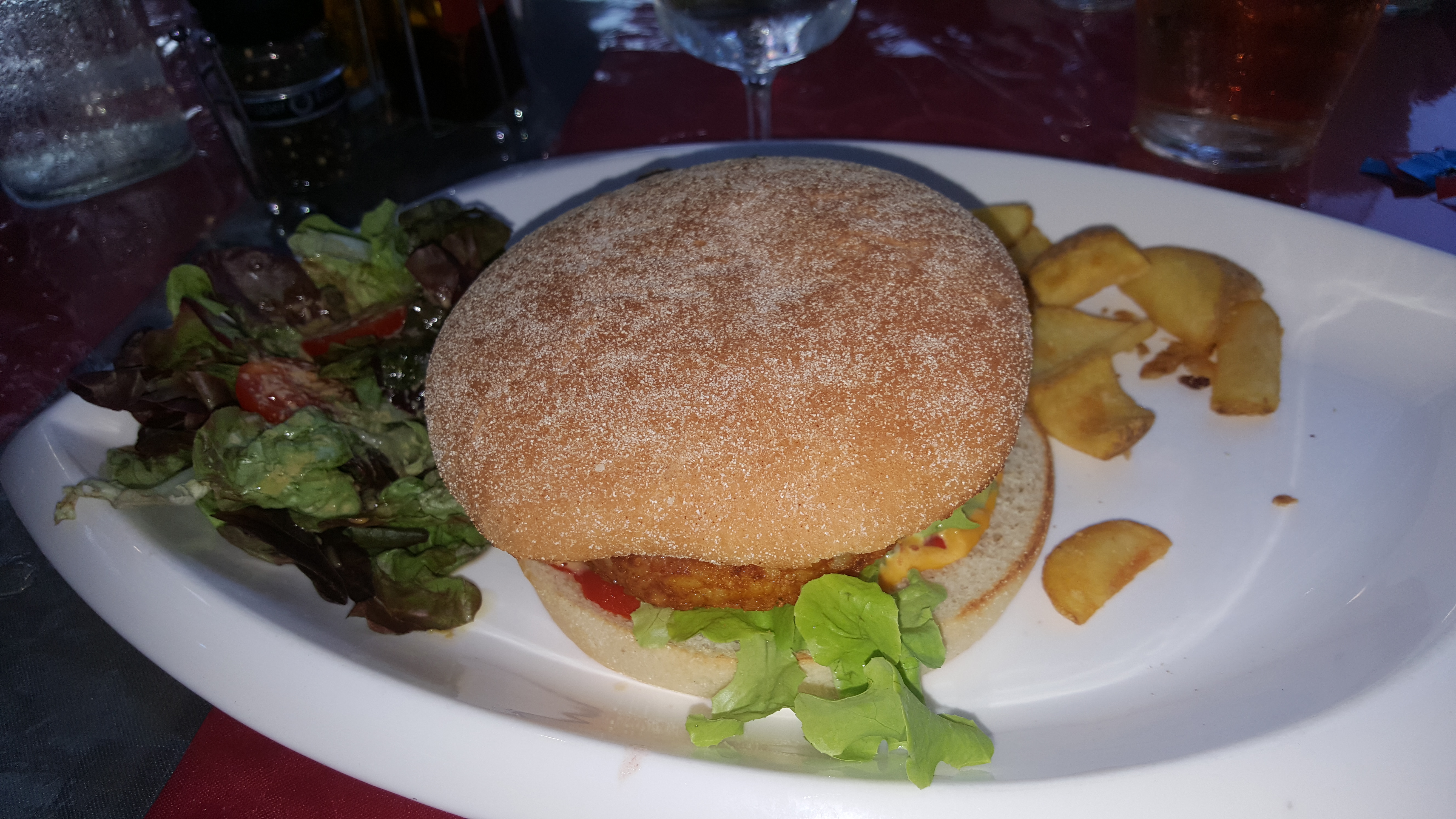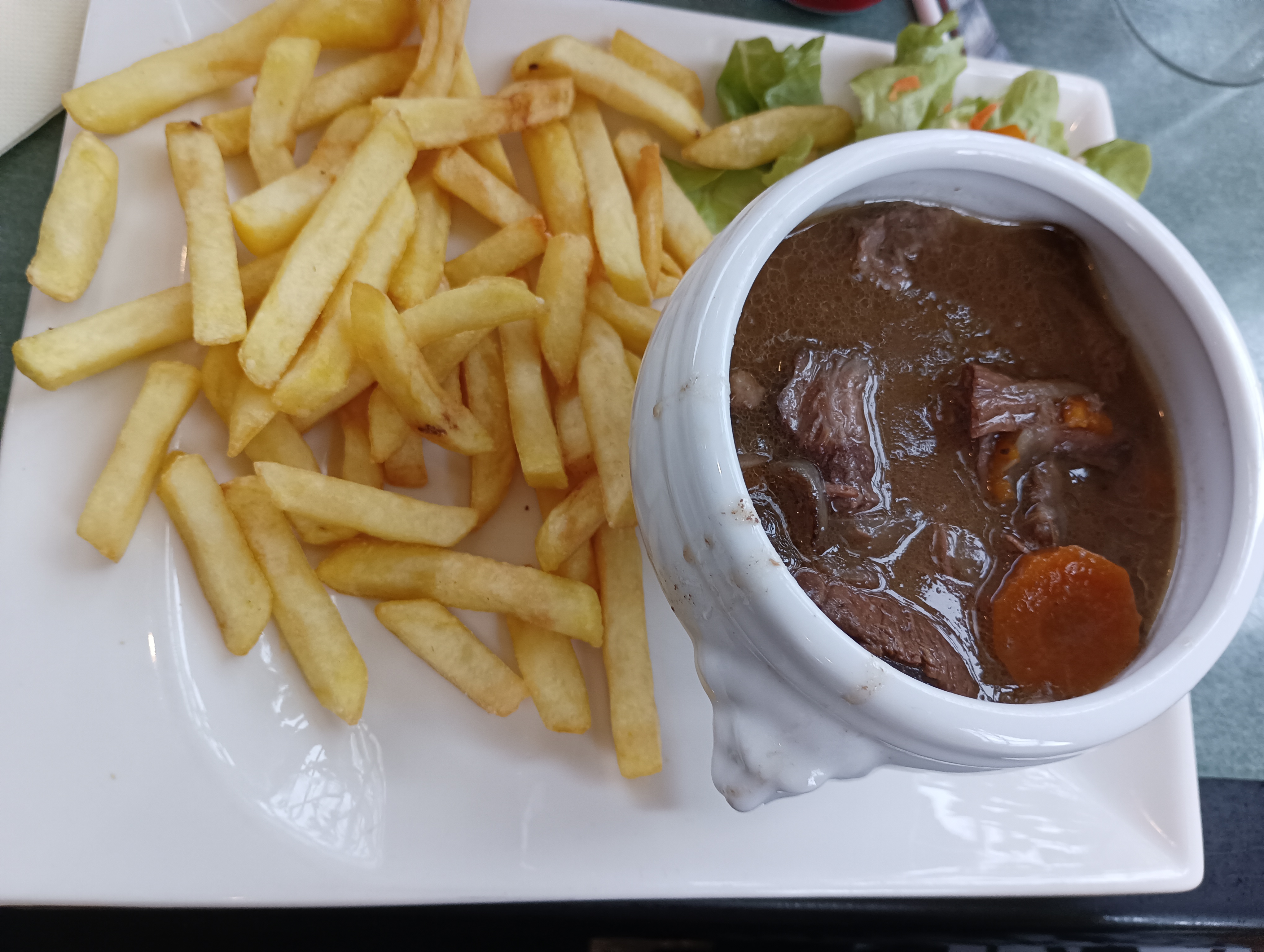 Bon repas mais service plus que limite. Le serveur a renversé la salade sur mes genoux juste quelques excuses. Il n'a même pas nettoyé la table il a fallu redemander une salade car plus d'assaisonnement sur l'autre. Aucun geste commercial, la tâche sur le bermuda n'est pas partie.