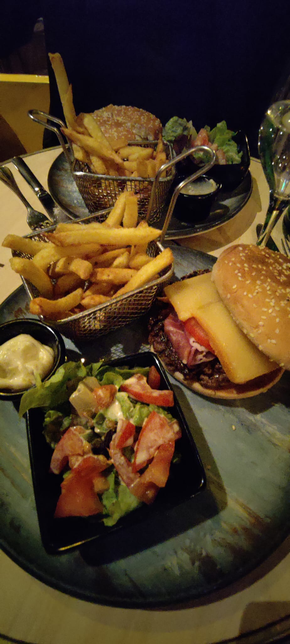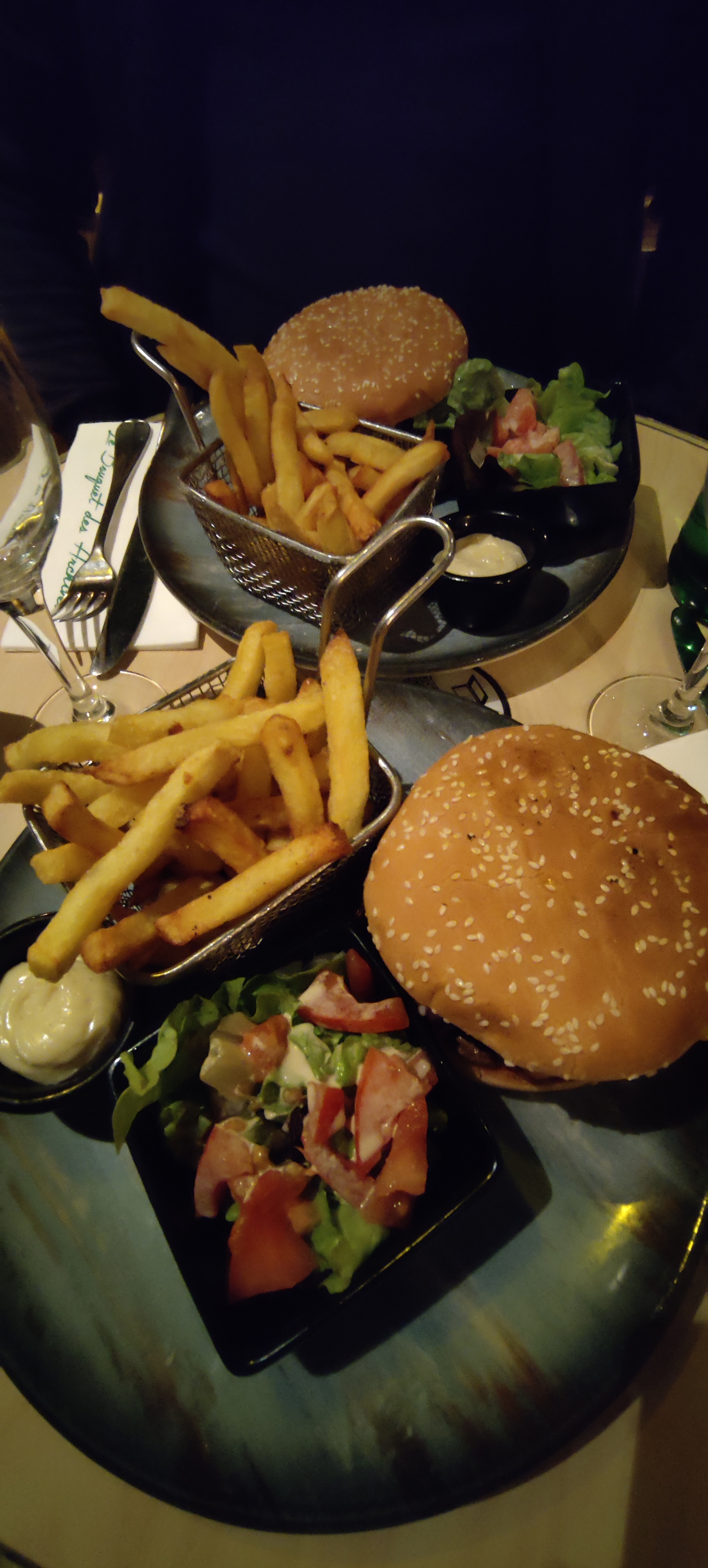 Burger avec oeuf, frittes et petite salade + café gourmand très bons
