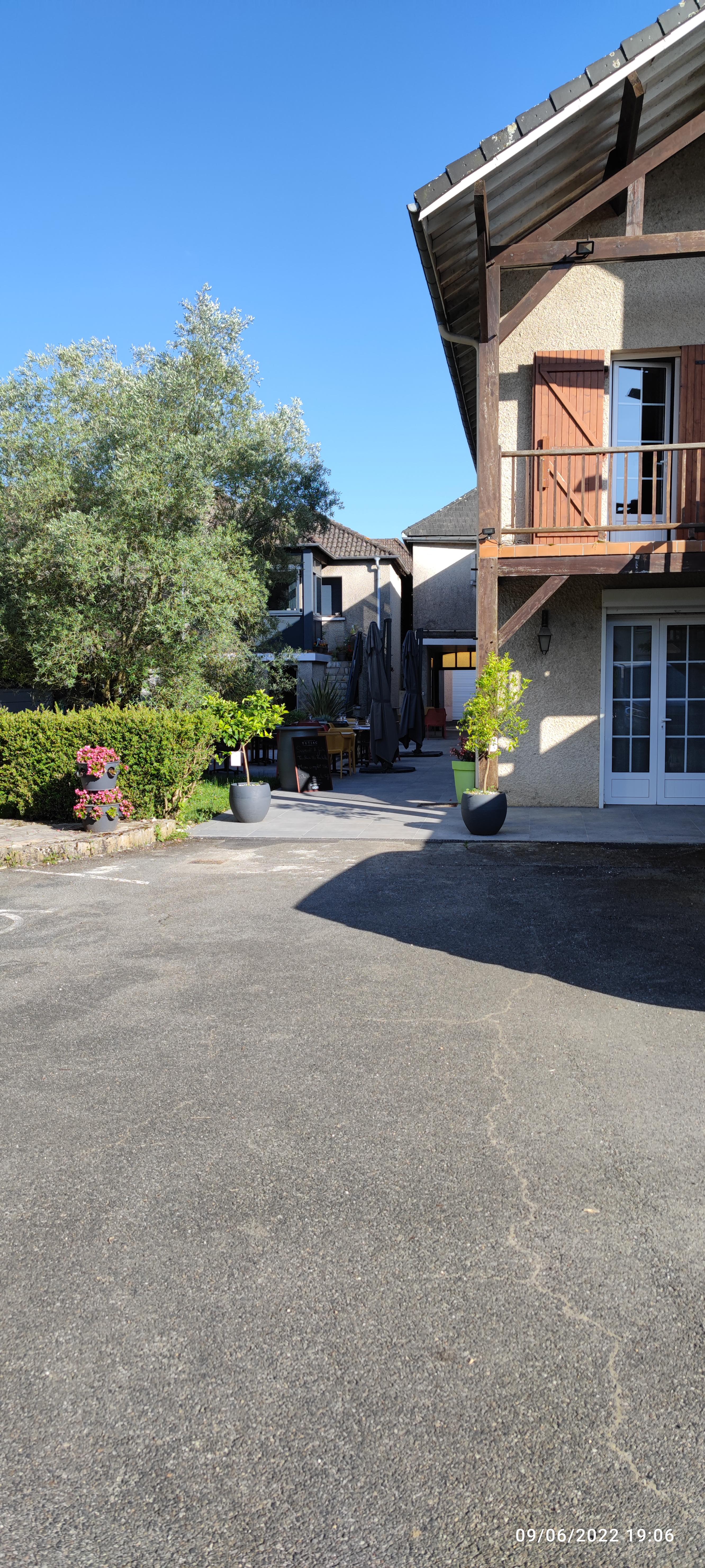 Parking donnant directement sur la terrasse. Le cadre est sympa, l'intérieur est plus jolie quand même. Les plats sont bons mais... le prix est haut pour ce que nous mangeons, ce n'est que mon avis.