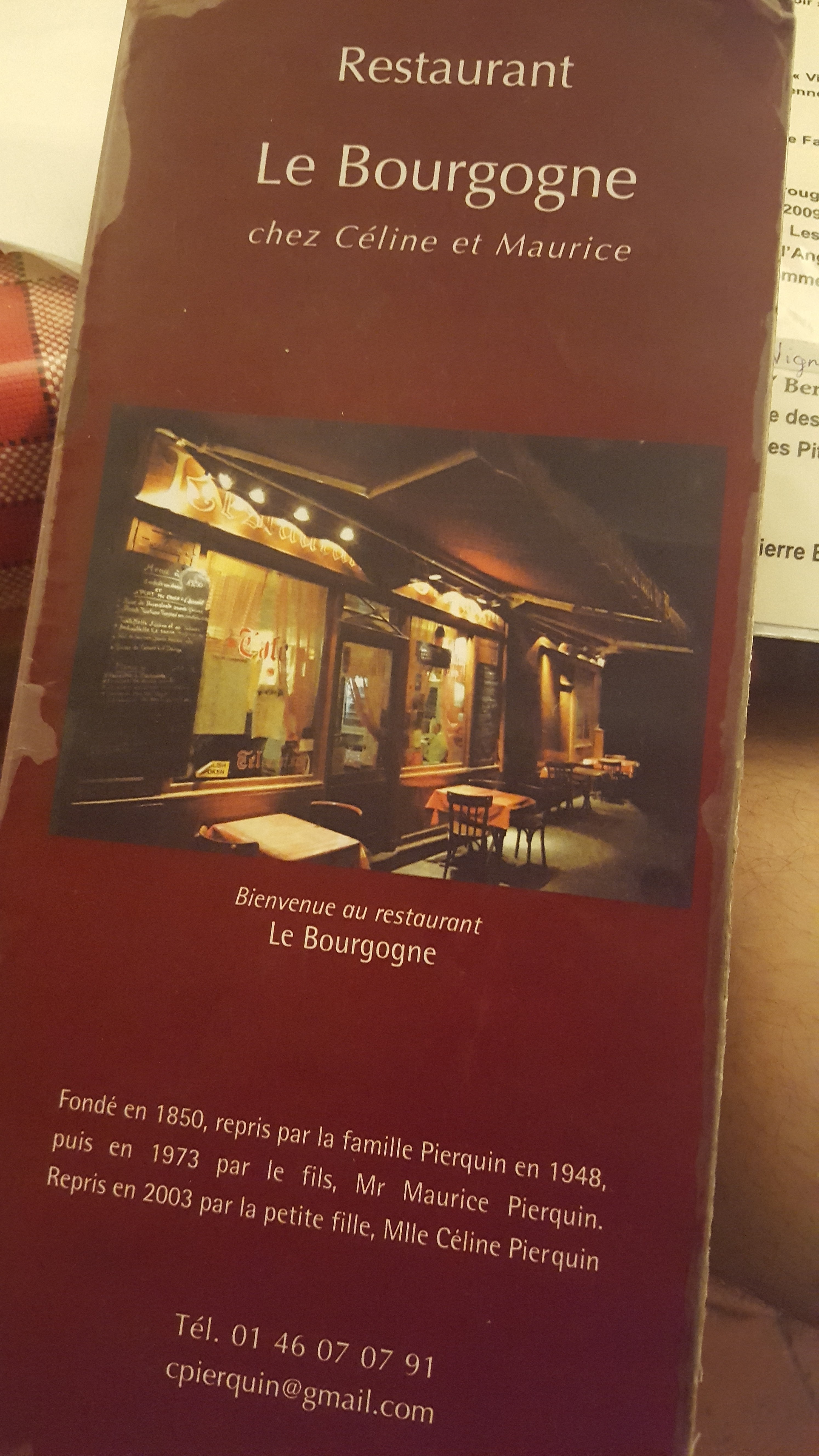Il y a 10 ans le Bourgogne était le seul restaurant de la rue de Lancry. Progressivement, le quartier à changé, des restos à thème un peu bobo ont fleuris aux alentours mais le Bourgogne continue à proposer une cuisine de bistrot classique et authentique à un prix mesuré. Vous n'y trouverez pas de quinoa ou autres légumes oubliés mais des onglets à l'échalote saignants et roboratifs :)