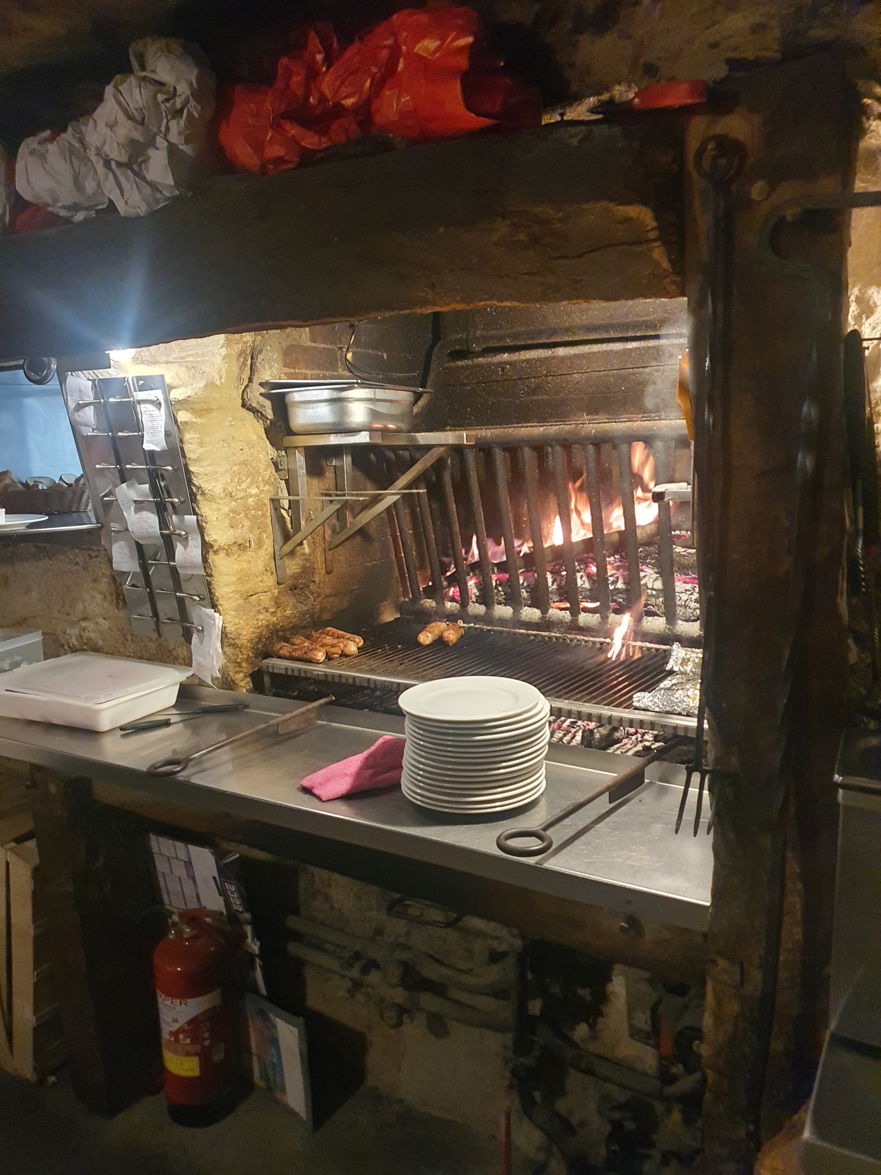 Ambiance troglodyte. Spécialités de grillades cuites au feu de bois dans la salle même, mais sans aucune gêne ( fumée ou odeurs ) Beaucoup de monde mais service efficace et rapide. Prix raisonnables. Je recommande.