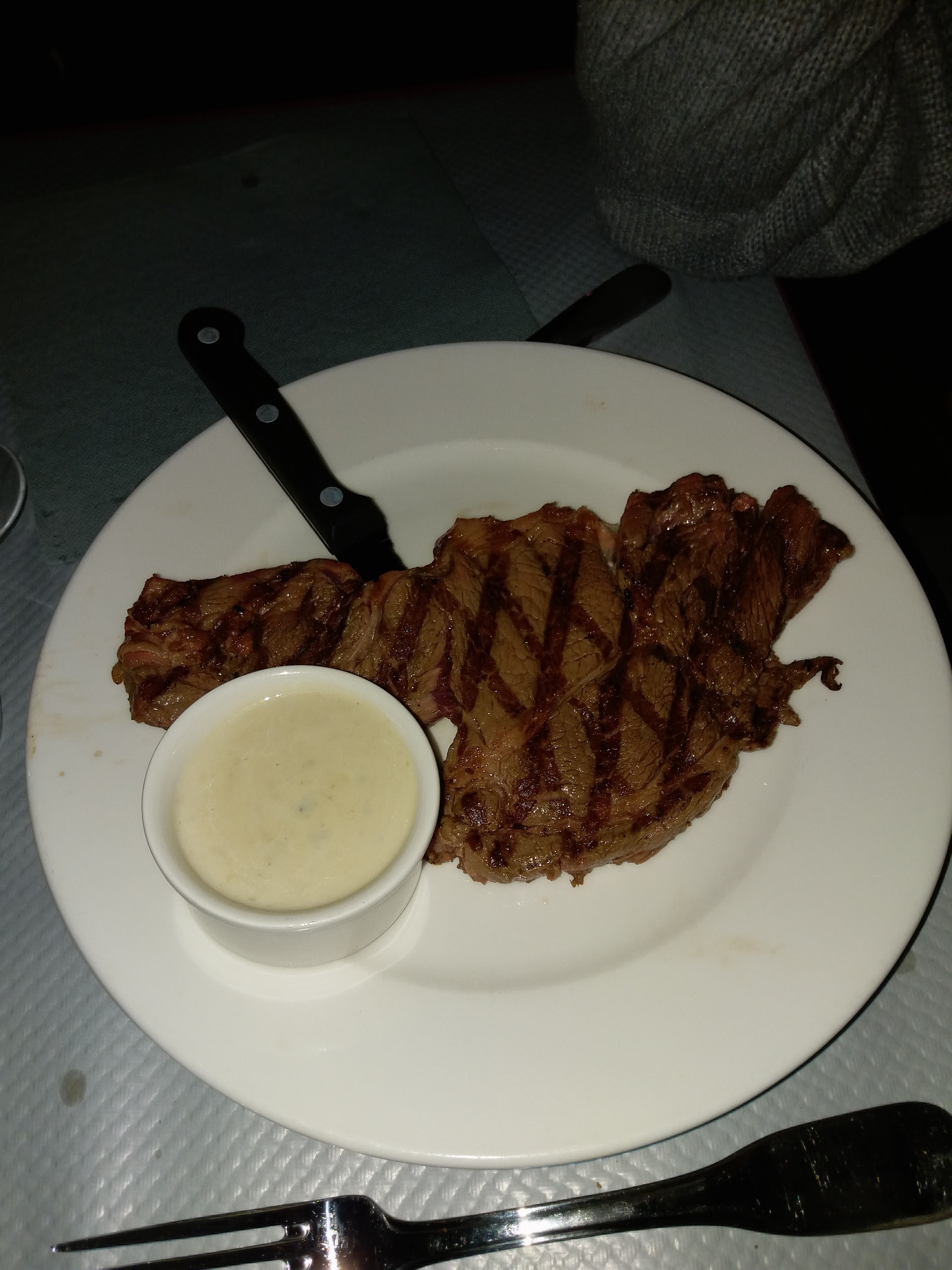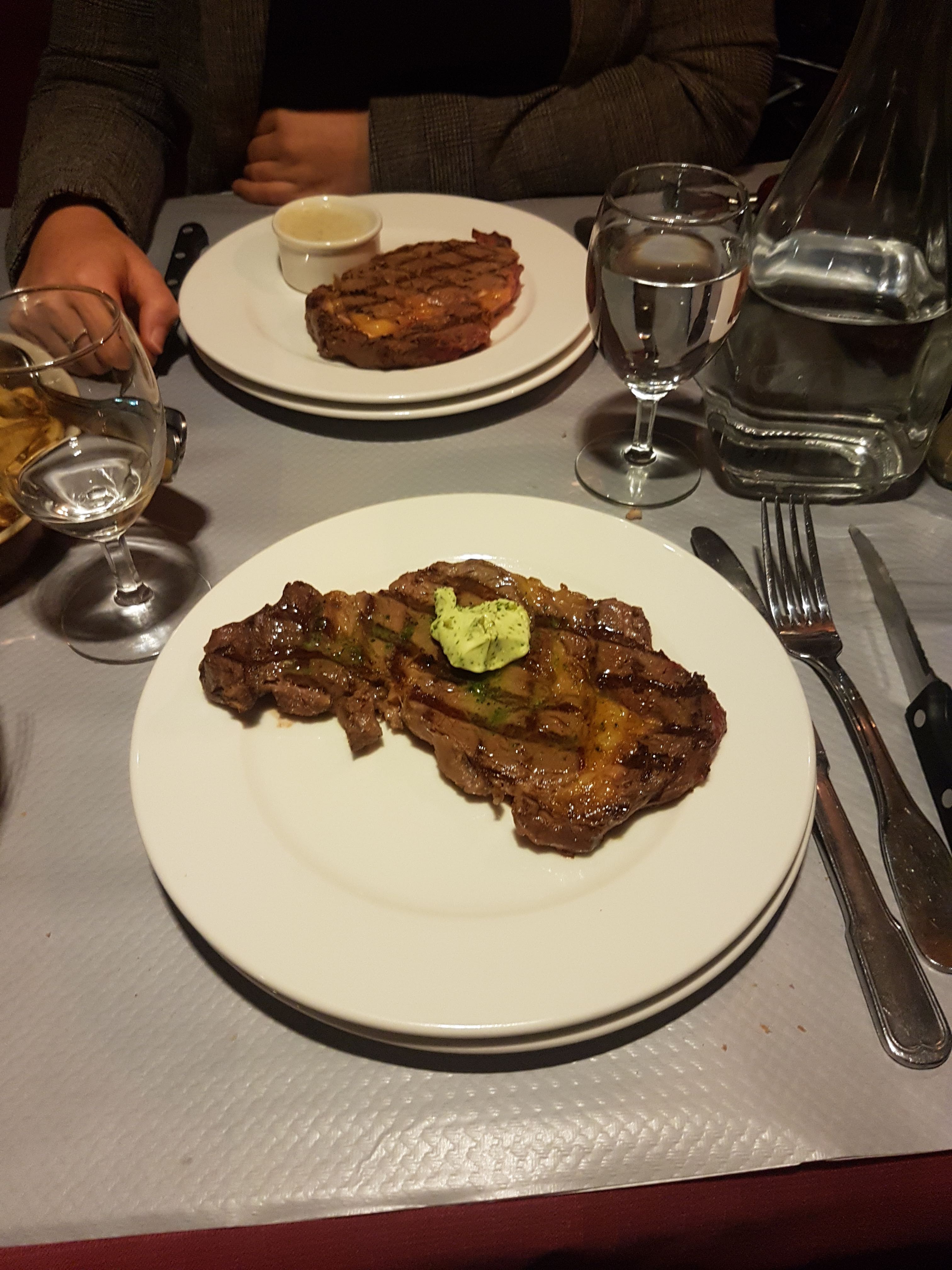 Pour commencer nous avons été très bien reçu. Ensuite nous avons pris la formule à 27 euros et nous n’avons pas été déçus. L’entrée très bien, Les entrecôtes étaient très bonnes et cuites comme on voulait : saignante et ça c’est appréciable. L’assiette de fromage TOP. Et pour terminer petite glace. Merci pour tout cela, on reviendra sans hésitation 😁.