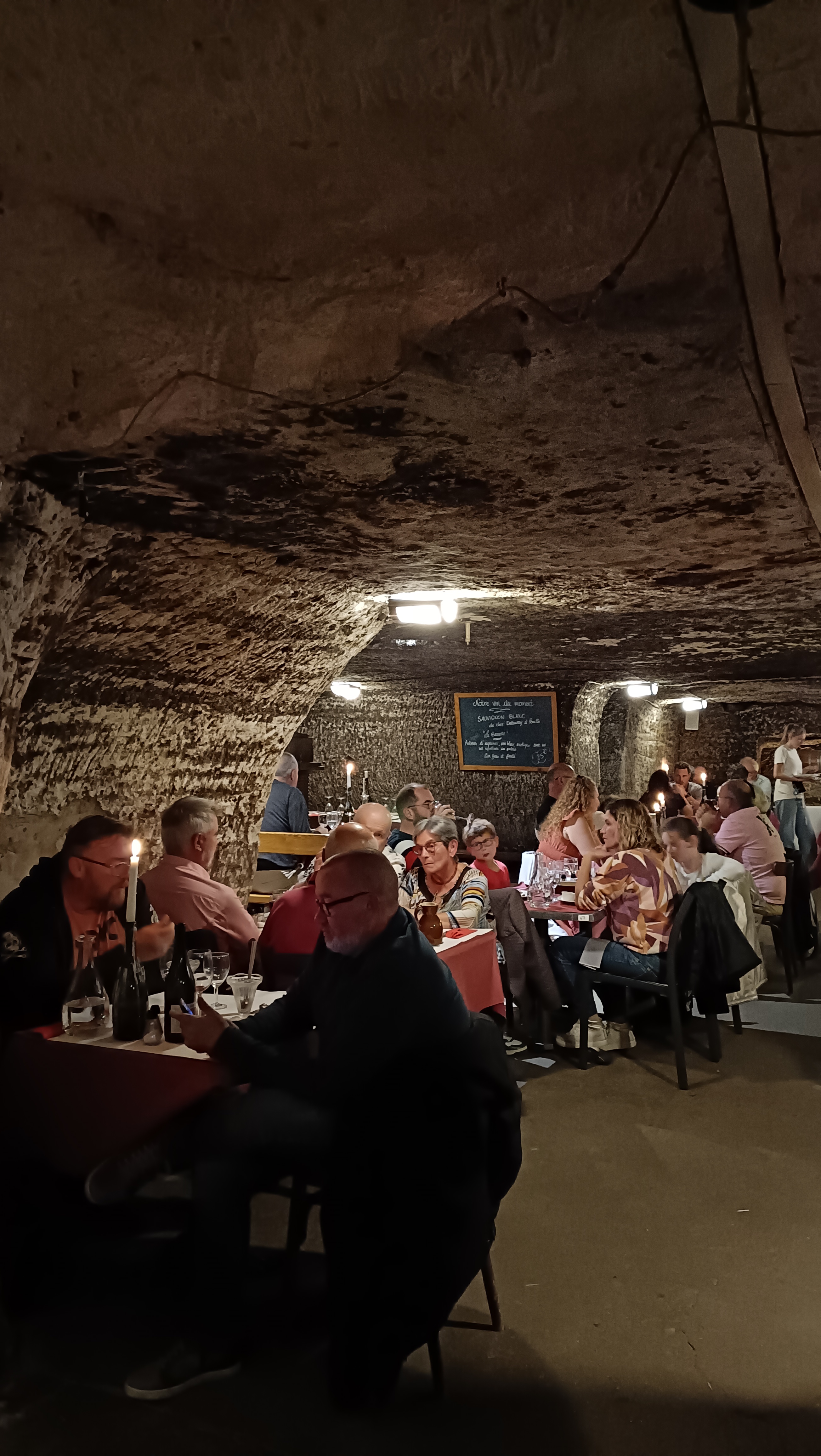 Message téléphonique pour réservation sur le répondeur car le restaurant n'est ouvert que du vendredi au dimanche. Pas d'assurance donc d'être validée avant le vendredi! De plus leur site ne fonctionne plus ! Appel du restaurant pour confirmer notre réservation du dimanche 31/03/2024 au soir le vendredi matin. Lieu rustique dans une cave troglodyte espace étroit entre les tables et sans décoration. Un point positif: des serviettes en tissu. Nous avons choisi le menu classique à 28€90. Simple et campagnard dans l'assiette comme dans la présentation. Ne cherchez donc pas de raffinement pour le service comme dans les plats proposés car ce n'est pas le choix du restaurant qui propose une cuisine fait maison simple et quantitative. Plusieurs reproches néanmoins: L' eau de carafe: goût et odeur de javel. Pain blanc industriel qui dénote Salade verte industrielle Cuisson des viandes pas respectée. Filets de poulet non fermier et d'origine ? Attente importante pour le dessert. Personnel peu loquace. Cher dans l'ensemble presque 200€ à 5 (apéritifs compris). Note moyenne basse pour moi. Nous n'y retournerons pas, mais peut satisfaire une clientèle moins exigeante.