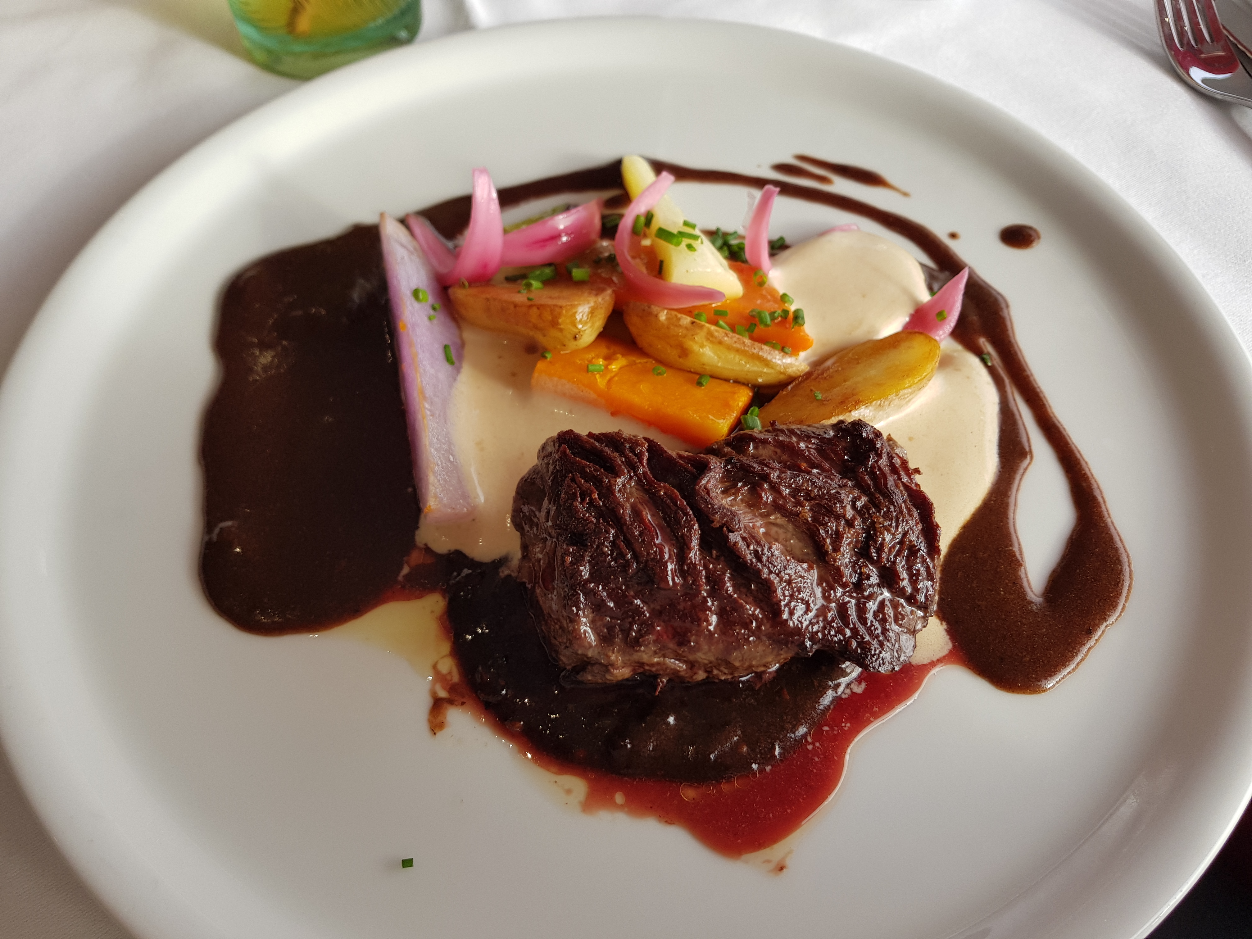 Extérieur design, nom original, intérieur frais et accueillant (on mange enfin avec une vraie nappe et des vraies serviettes en tissu!). Le menu qualitatif et quantitatif. Personnel agréable, disponible et très pro. Nous ne connaissions pas la région ni ce restaurant, mais c'est avec plaisir que nous y reviendrons et recommandons.