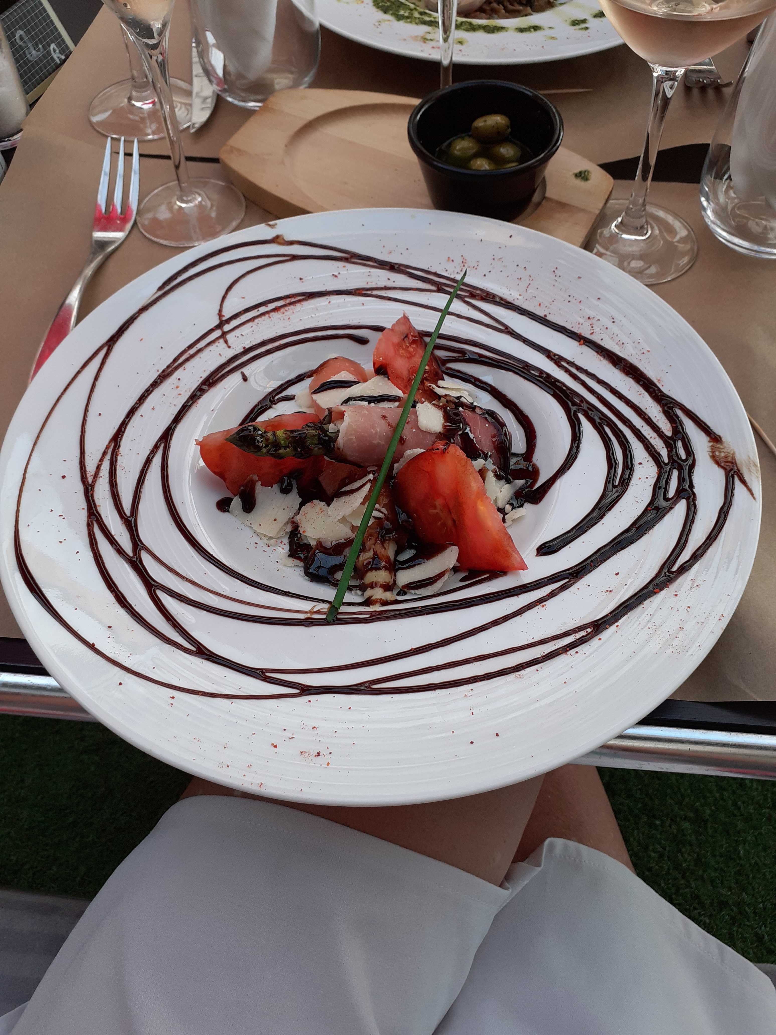 Vin vinaigré, plat peu généreux, beaucoup d'huile d'olive avec me saumon. Prix élevé par rapport a la qualité et la quantité La bière est bonne en revanche.