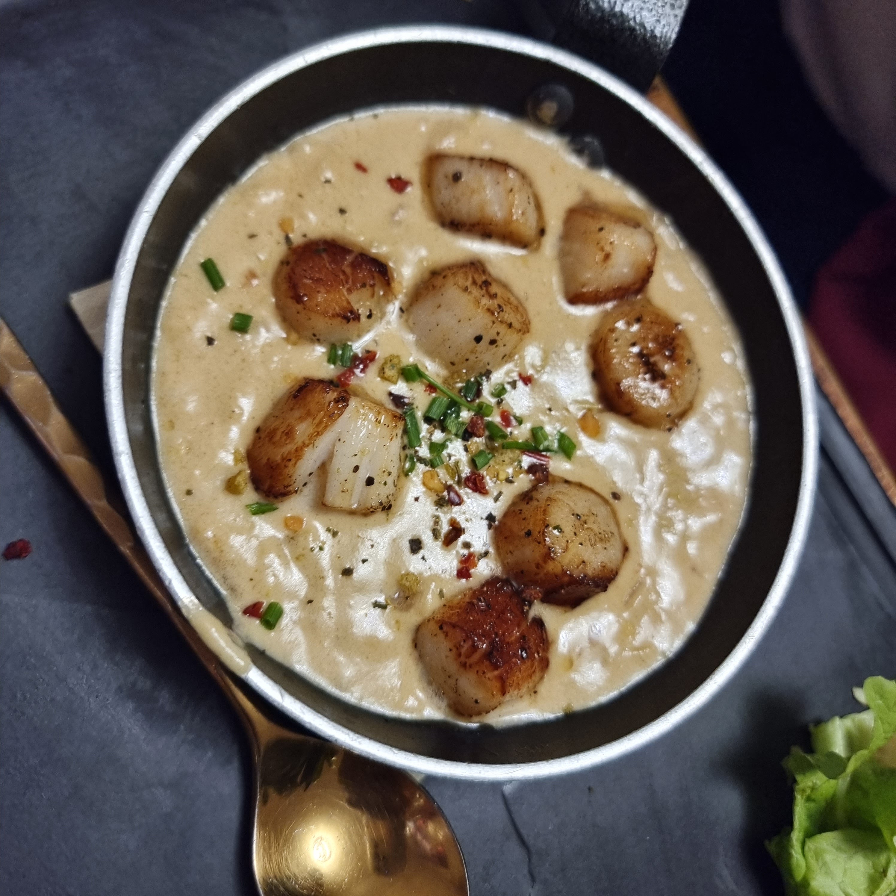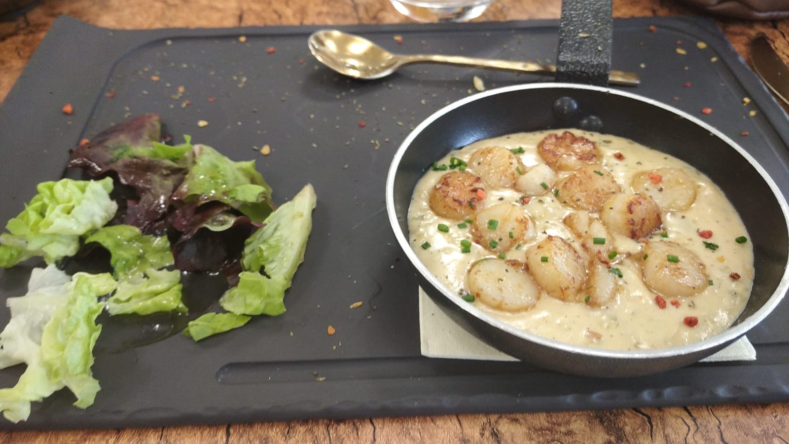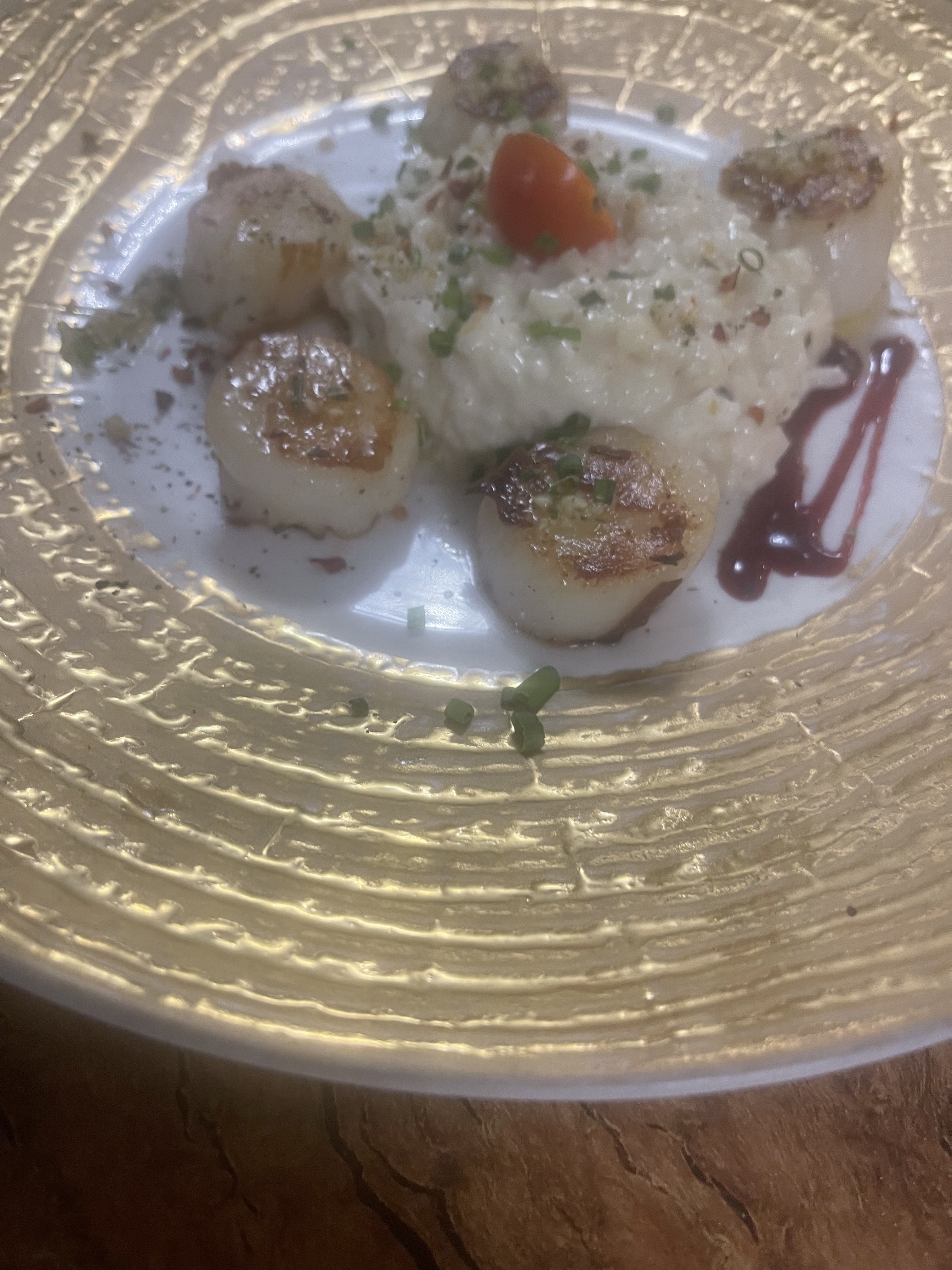 La cuisine est très bonne, mais les entrées et les plats sont arrivés un peu froid. Pour la fricassée de pétoncles, la sauce étant crémeuse il vaudrait mieux que ce soit chaud. Pour le mélo-mélo de Saint Jacques, le risotto était tiède mais les Saint Jacques étaient froides. C'est dommage. Le restaurant est très bruyant. Le service est à revoir.