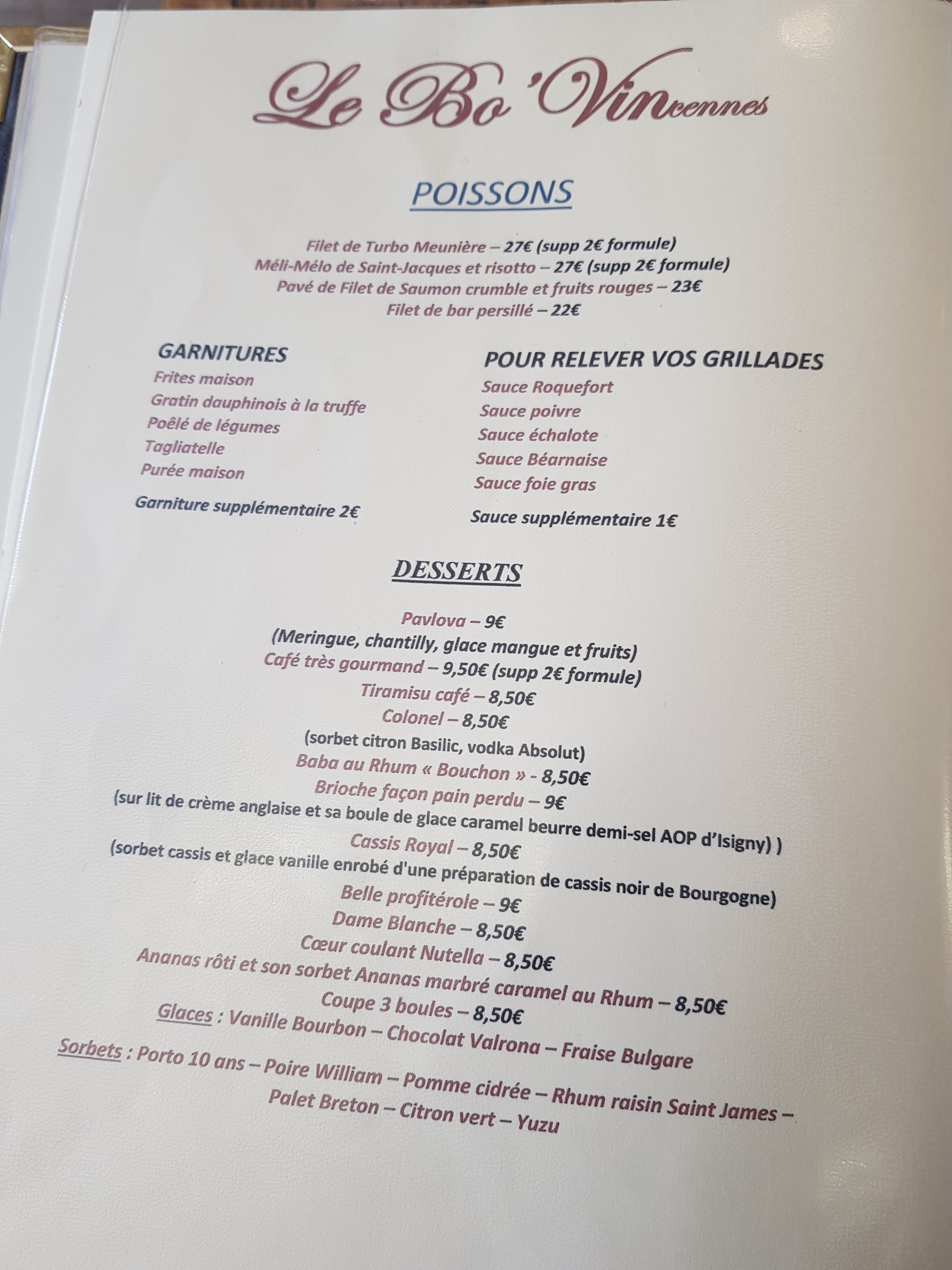 Alors le sous entendu du nom de ce restaurant ne laisse pas de place au doute Le Bo'Vin. Des viandes tendres et raffinées mais pas que avec des entrées et des desserts à vous faire revenir pour essayer toute la carte. Bravo...