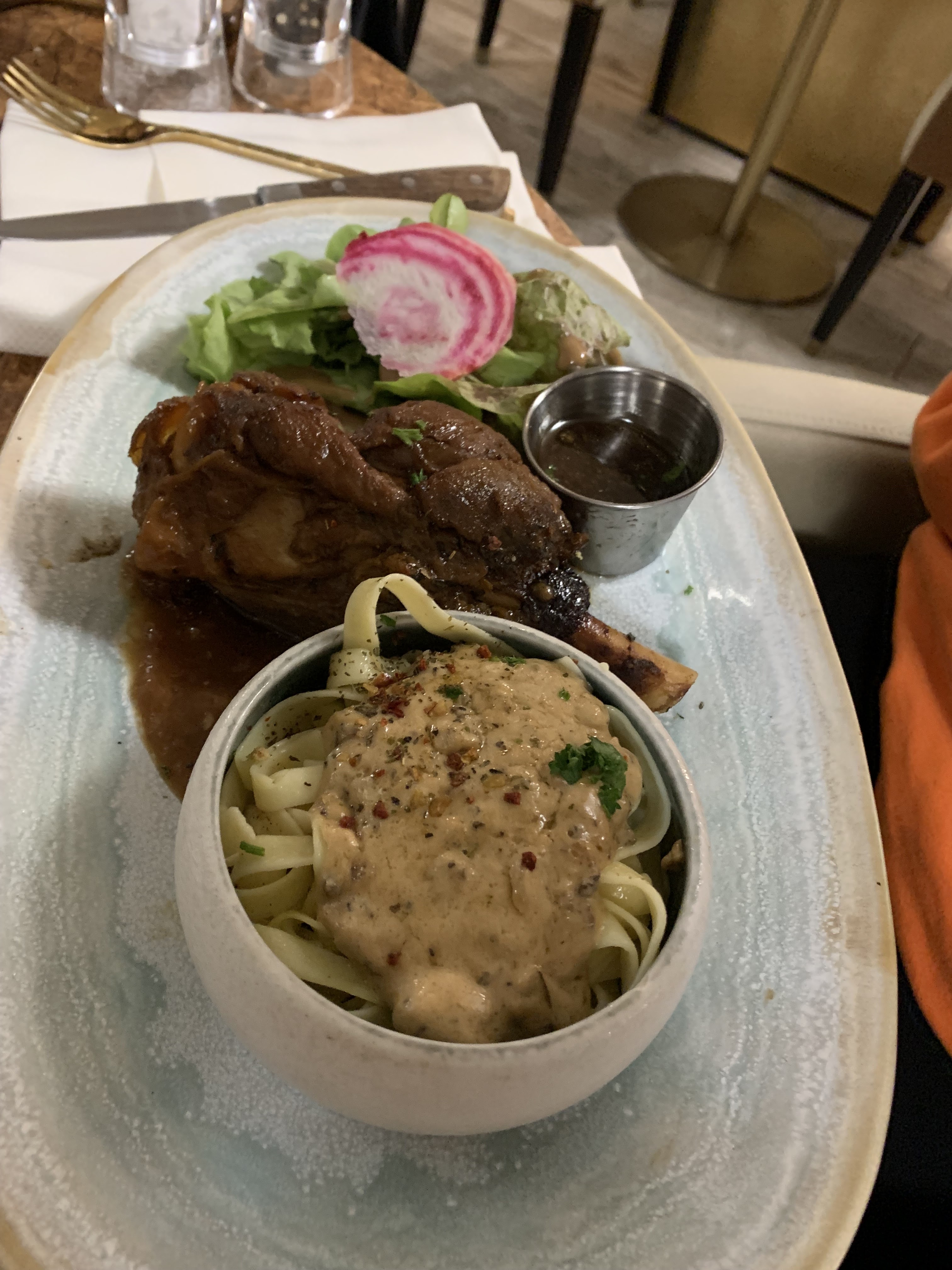 J’ai déjeuné avec ma mère un jour férié, peu de monde super ambiance la viande est délicieuse et le gratin dauphinois à la truffe à tomber ! Service très correct et rapide. Hâte de revenir pour tester le menu midi 🤤