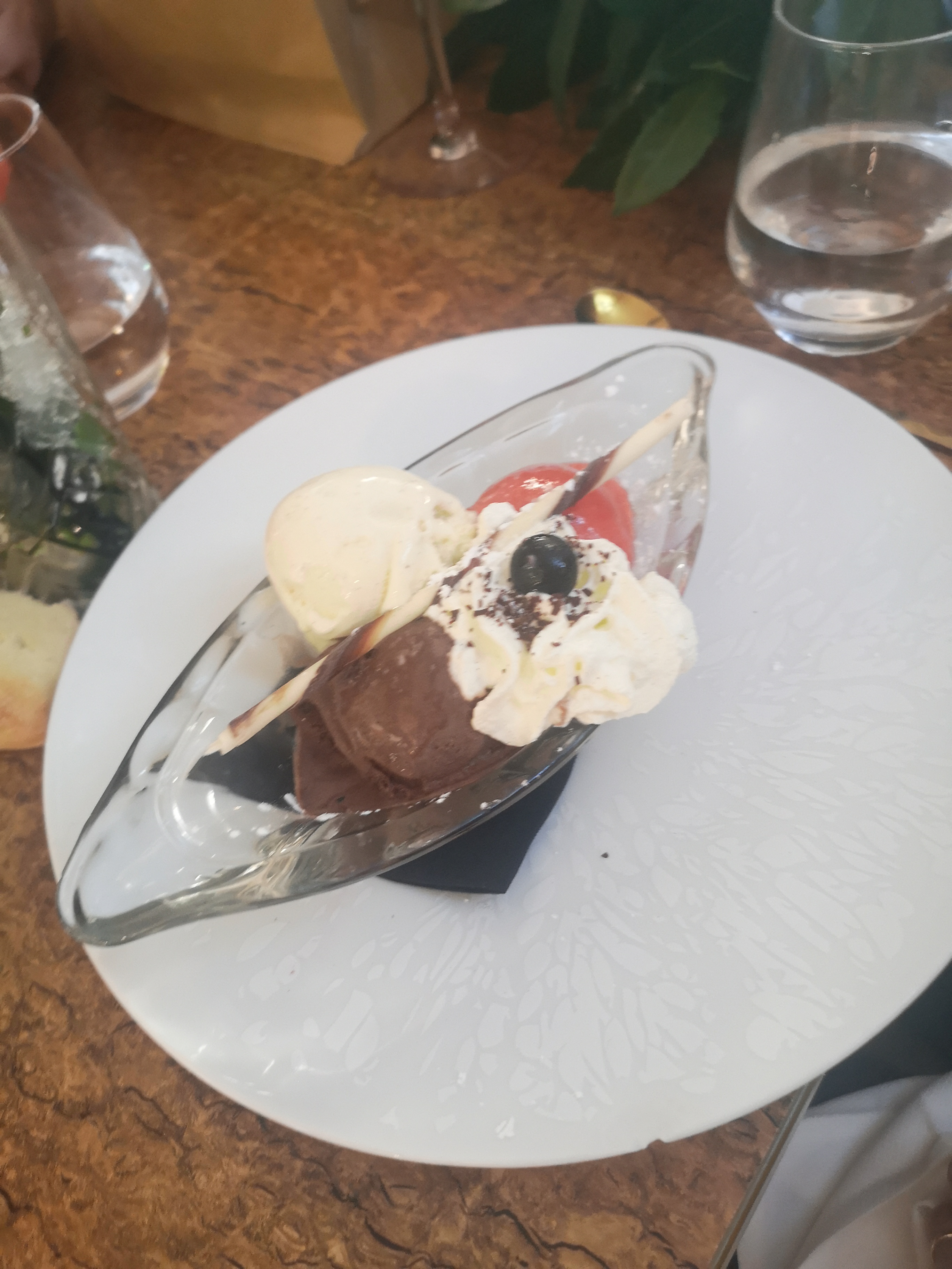 Très beau cadre, spacieux. Bien situé en face du Château. Très Bonne qualité de la nourriture. Prix légèrement élevé. Je recommande. Repassé pour la 6ème fois. Le tiramisu à la pistache, top et pas trop sucré, merci de ne pas en rajouter, Dame blanche un peu sucrée...Bon ça passe 😉👍