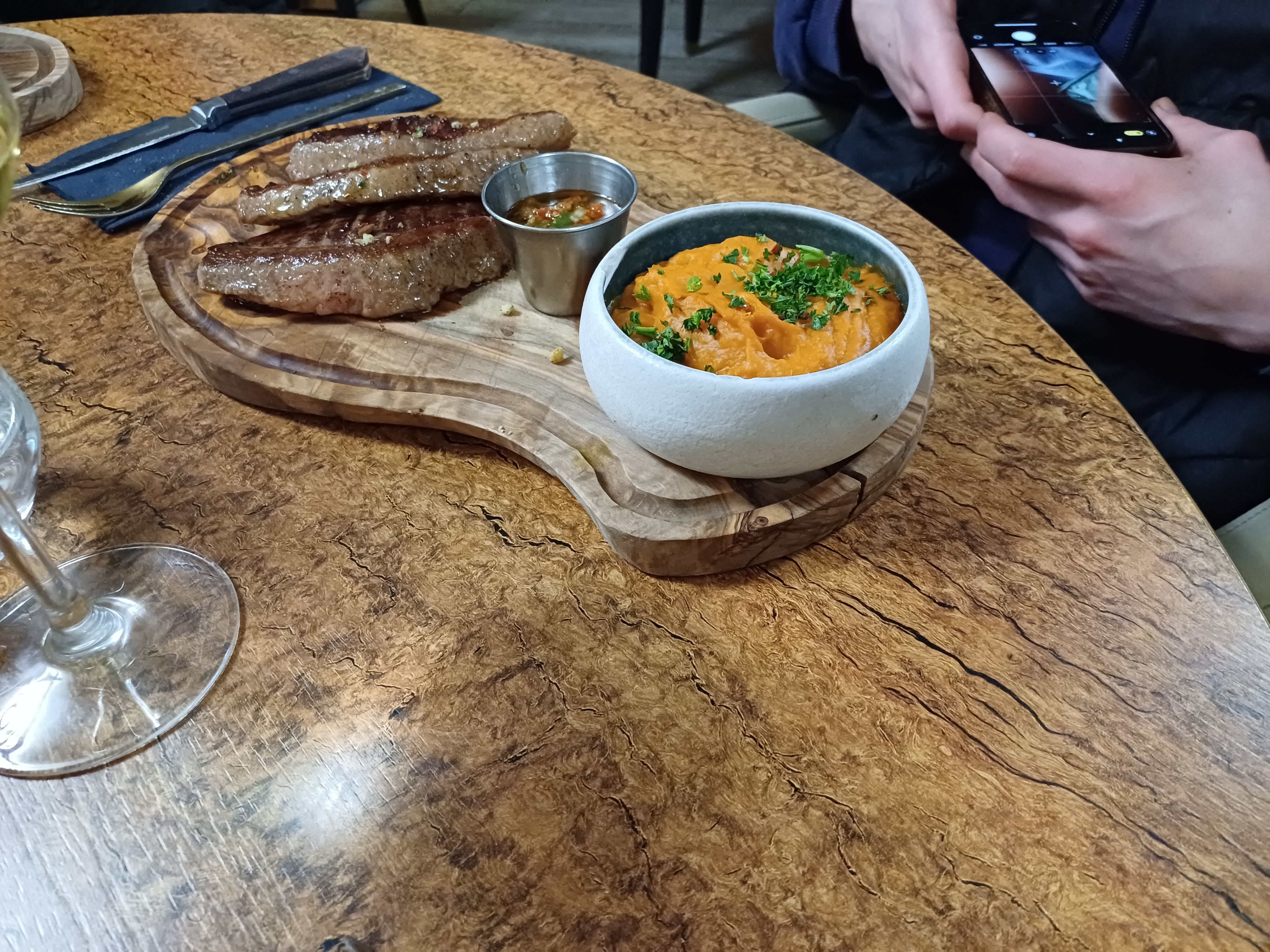 Tres déçu la Cote de bœuf a 30 euros pleine de nerf Dessert tres bien et personnel sympa