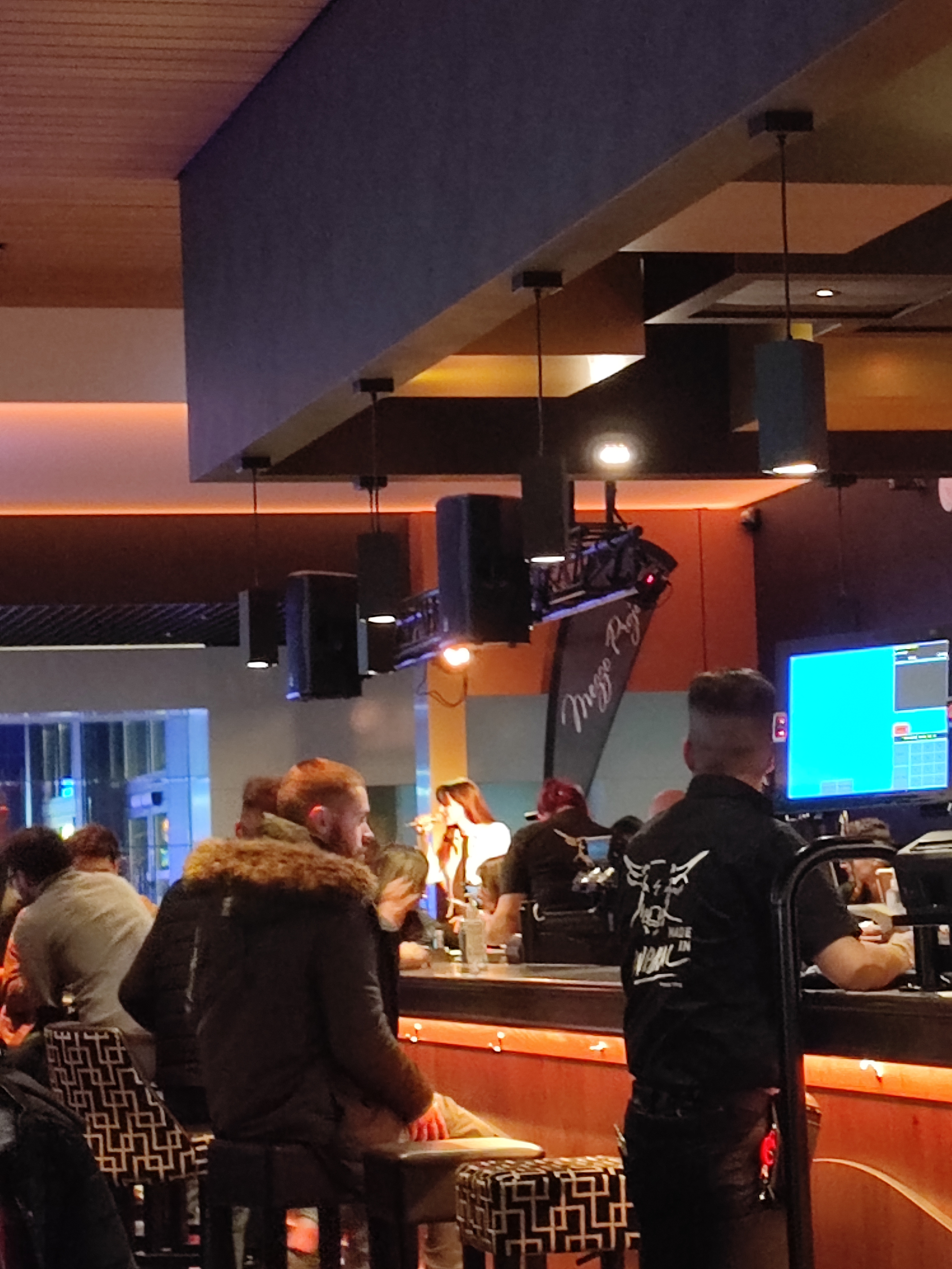 Nous avons été dîné en famille. Ambiance de fou! Les serveurs tous aussi sympas les uns que les autres! Le patron à la caisse. La nourriture à tomber par terre, locale, copieuse, délicieuse voire préparée devant nous! Les vins aussi sont succulents! Bon, les végétariens et les gens au régime, passez votre chemin… là bas c’est de la viande et du fromage à gogo!! (Tout ce que j’aime!) 🤤 La cloche sonne pour les pourboires et un serveur est attribué pour chanter « joyeux anniversaire » toute la soirée et dans plusieurs langues! Et en prime, si on n’a pas le ventre trop plein, on peut jouer au bowling, faire une partie ou plusieurs d’arcades ou simplement chiller au bar en buvant un bon verre et en écoutant de la musique quand un groupe se produit. Le temps passe très vite quand on s’amuse!