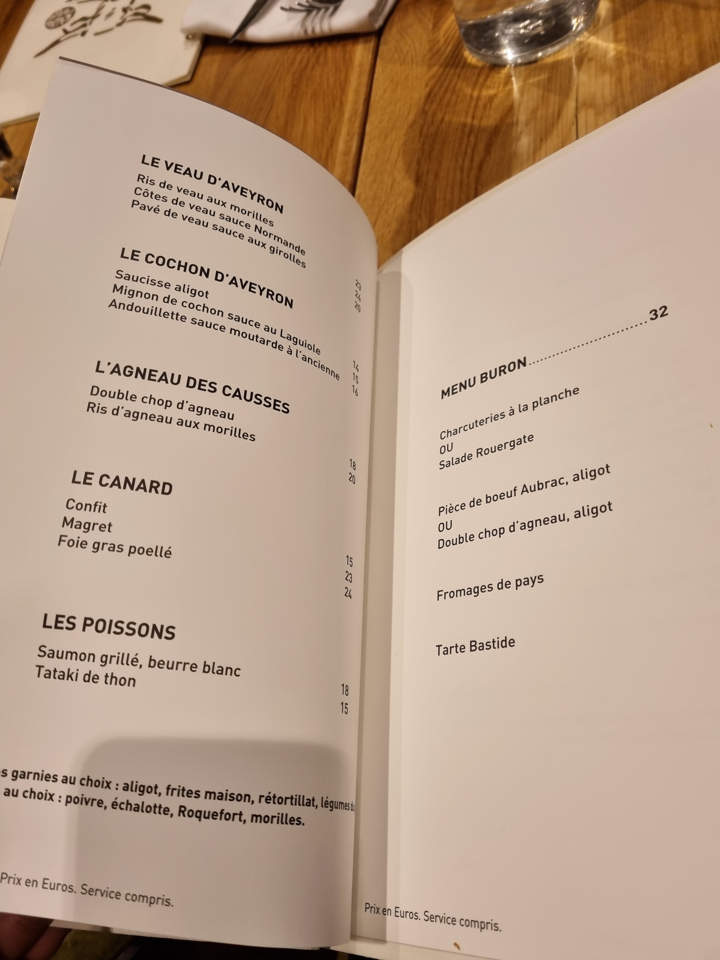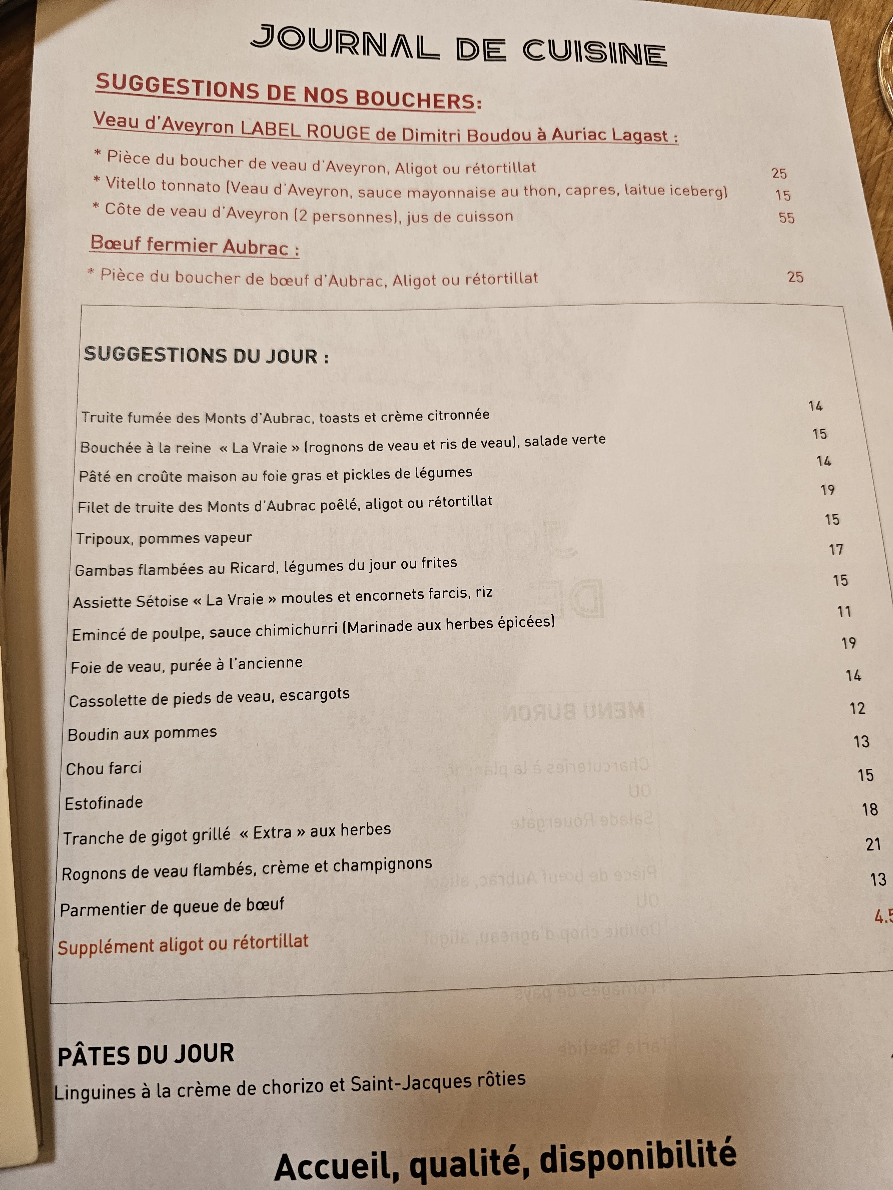 Menu Aubrac a 30e à augmenté à 36 ( janv 2024) Qualité des produits toujours au rdv. Bonne adresse.