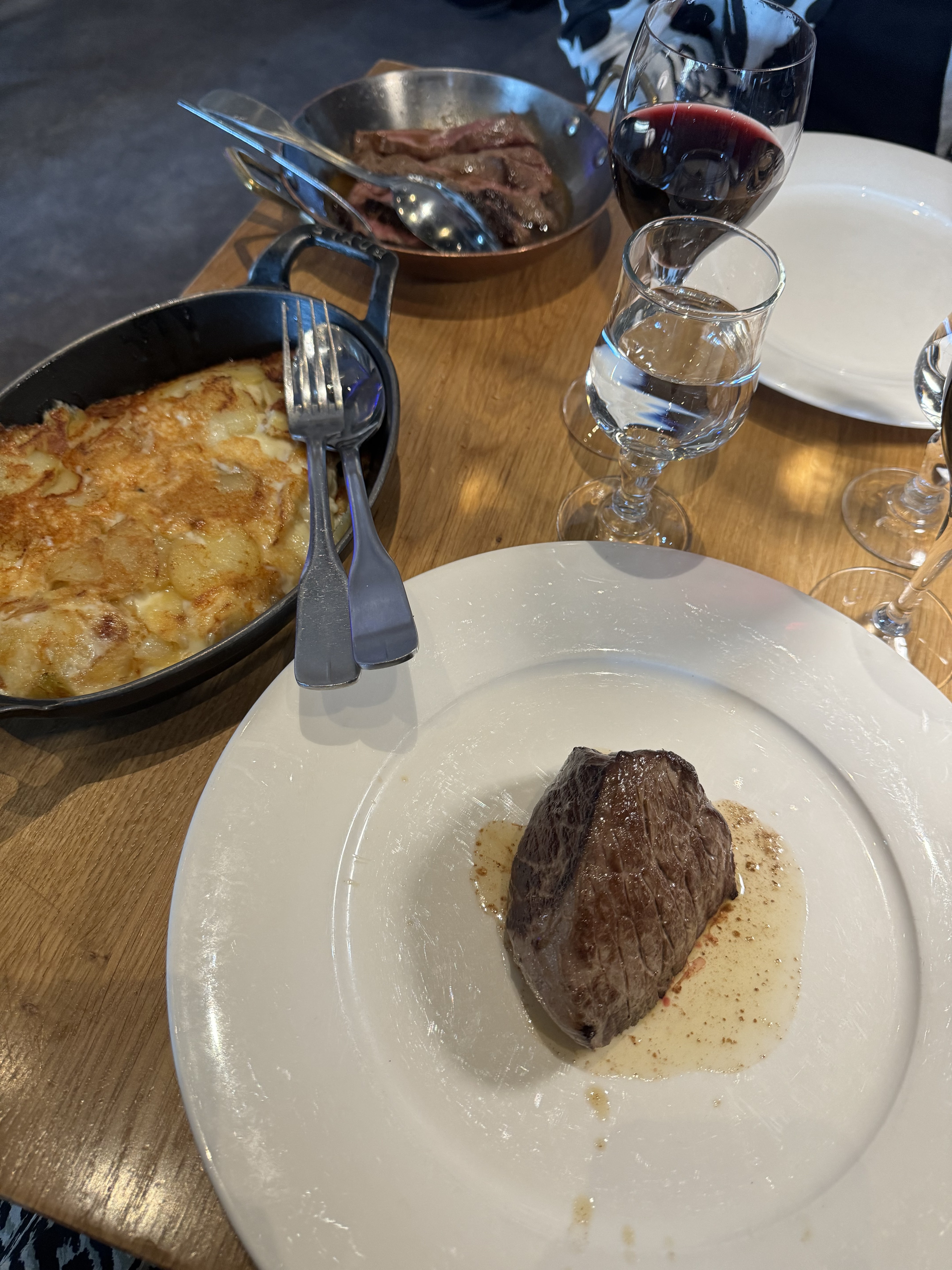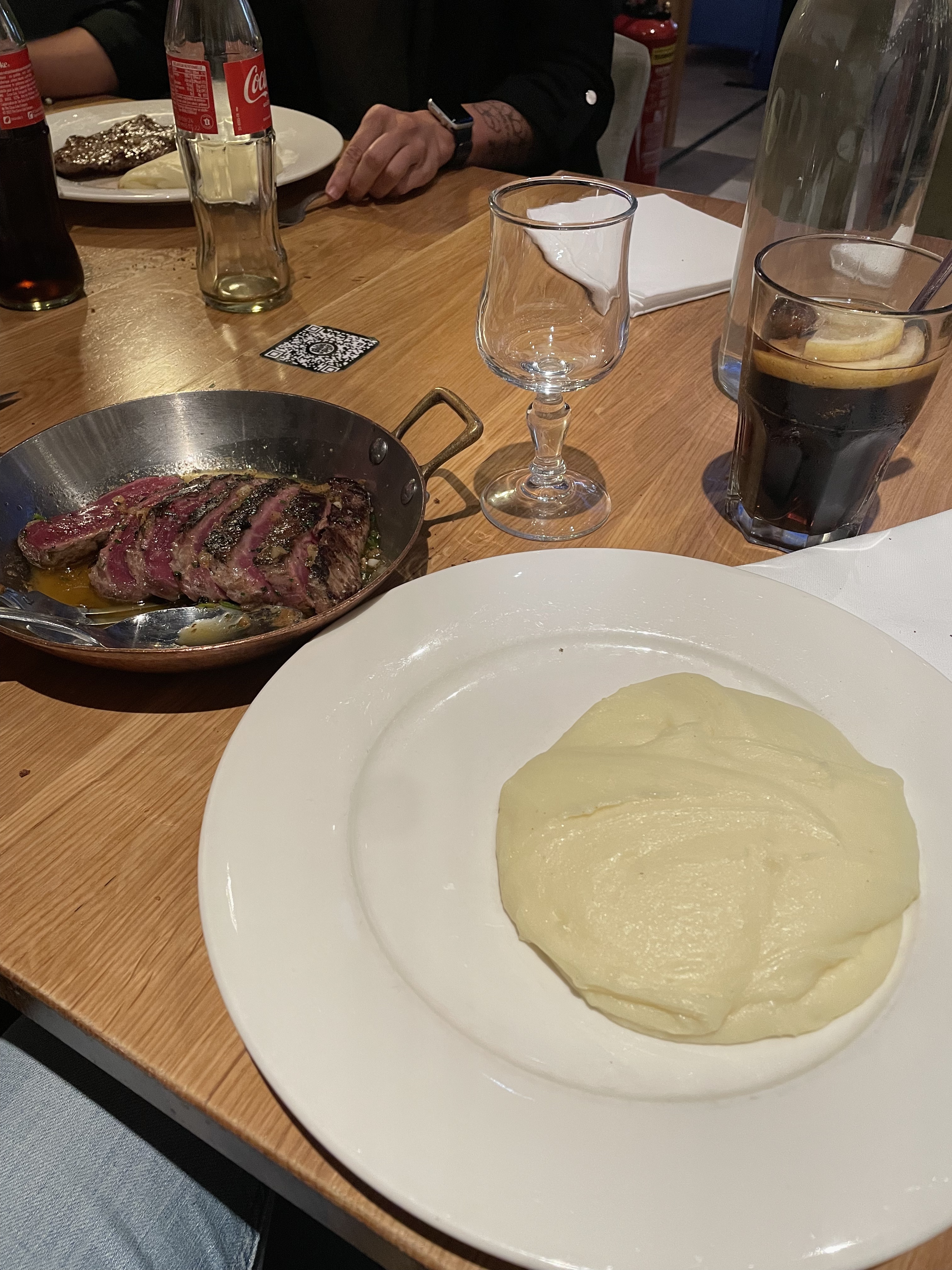 Restaurant au top. Serveurs accueillants et souriants L'entrecôte châteaubriand topissime 😋 accompagnée d'un aligot et d'une rétortillat.
